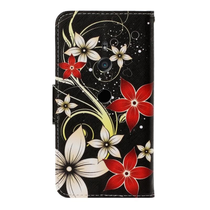 Θήκη για Sony Xperia XZ3 3D πολύχρωμη ζωγραφική οριζόντια αναδιπλούμενη από δερματίνη PU με βάση & υποδοχές καρτών & πορτοφόλι (Κόκκινο Λουλούδι)