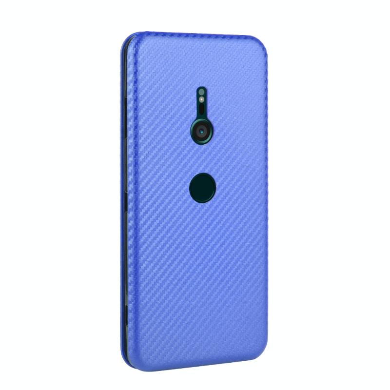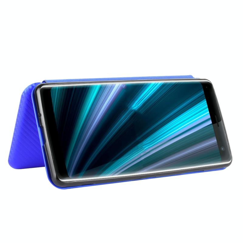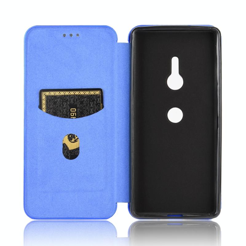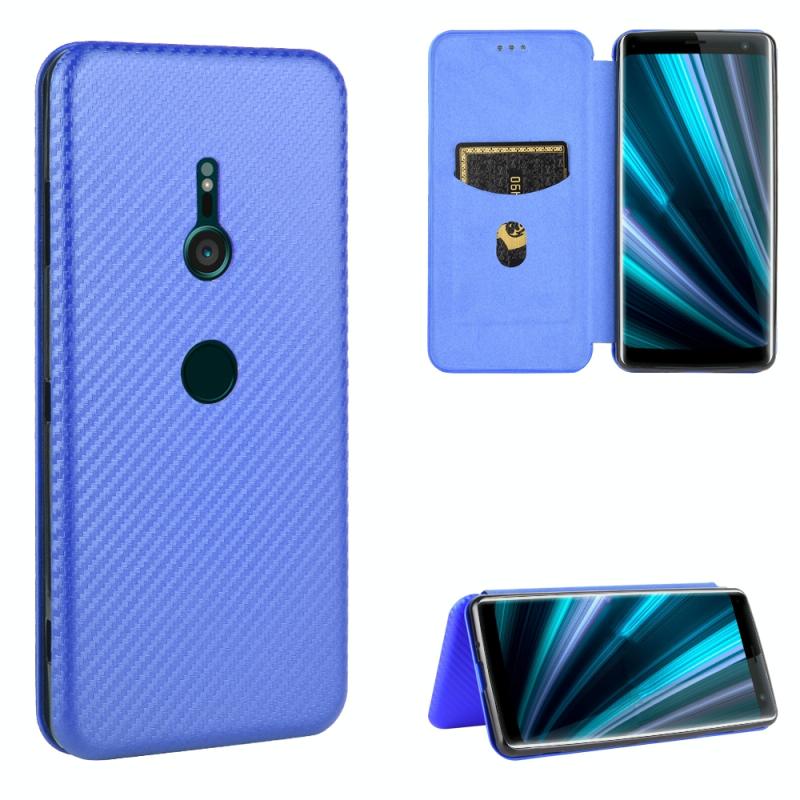 For Sony Xperia XZ3 Carbon Fiber Texture Horizontal Flip TPU + PC + PU Leather Case with Card Slot(Blue)