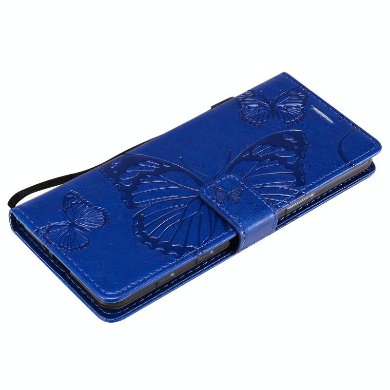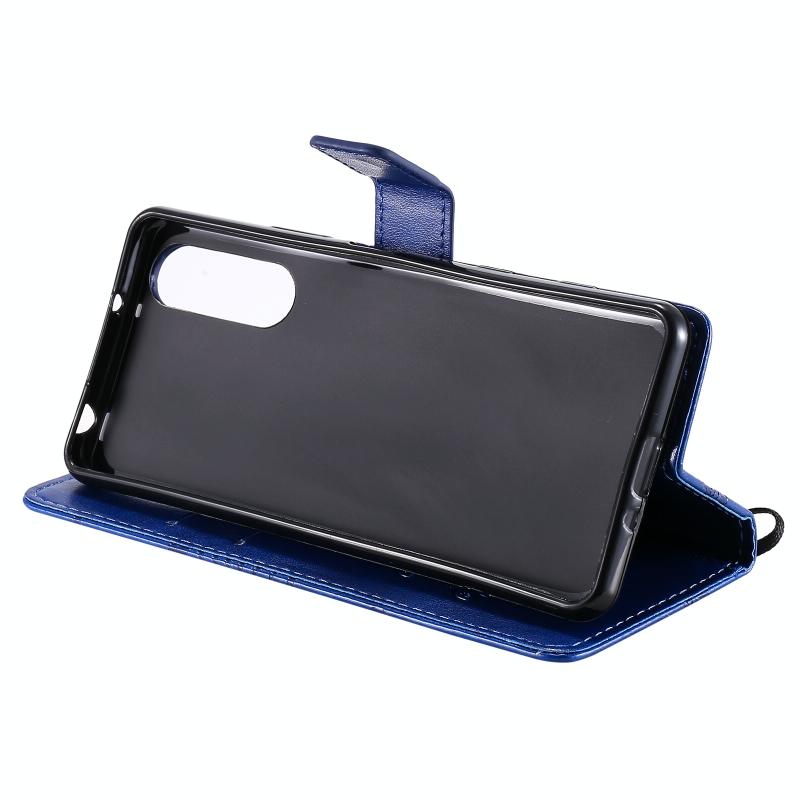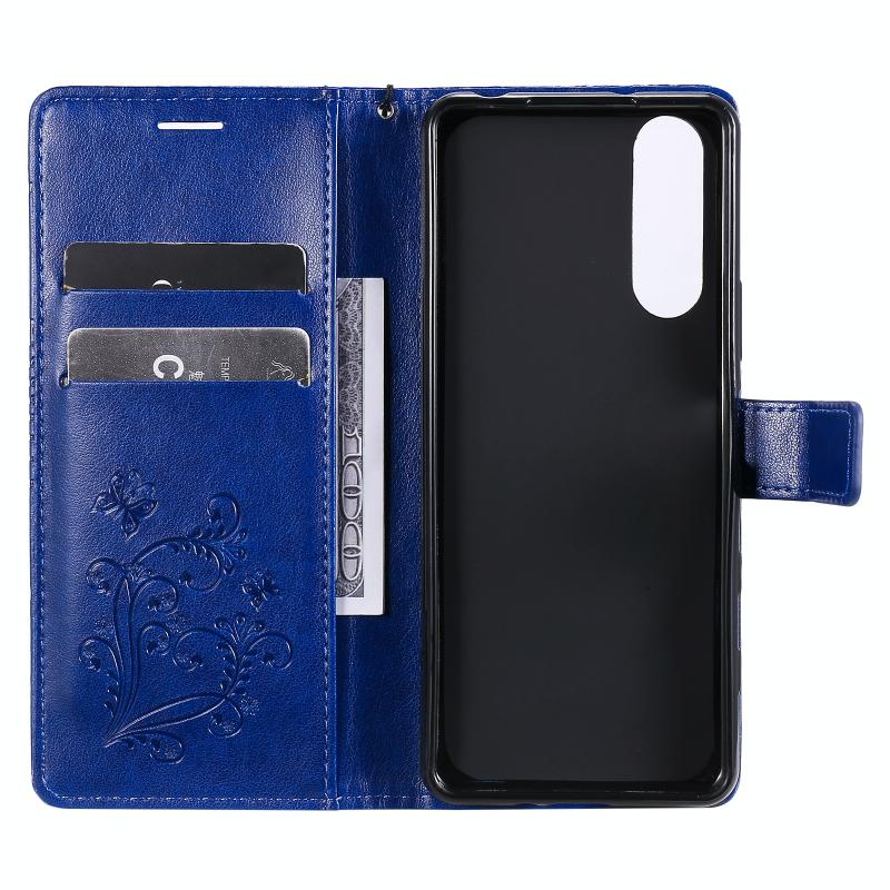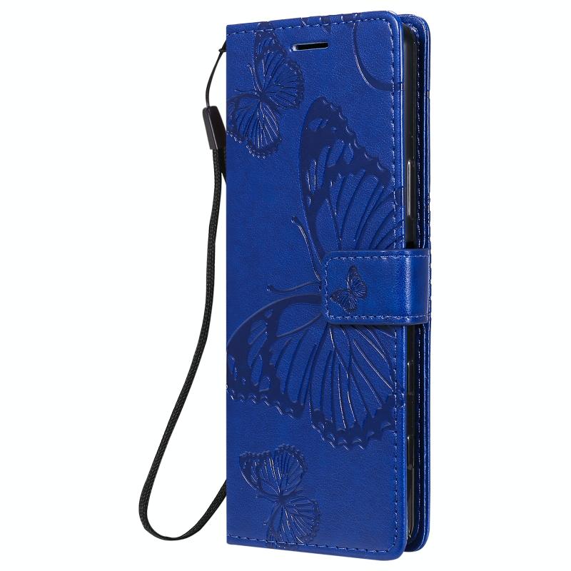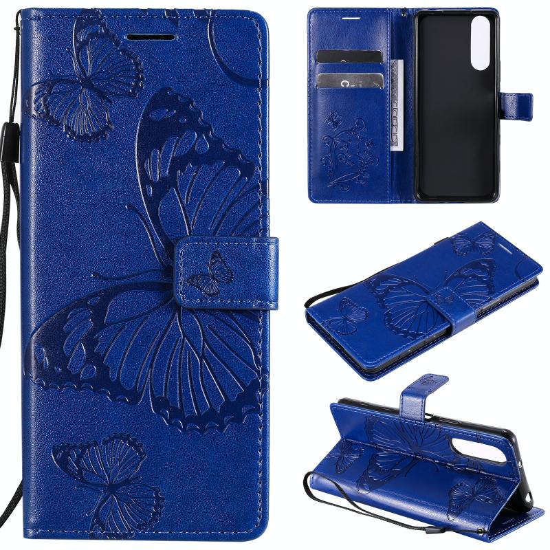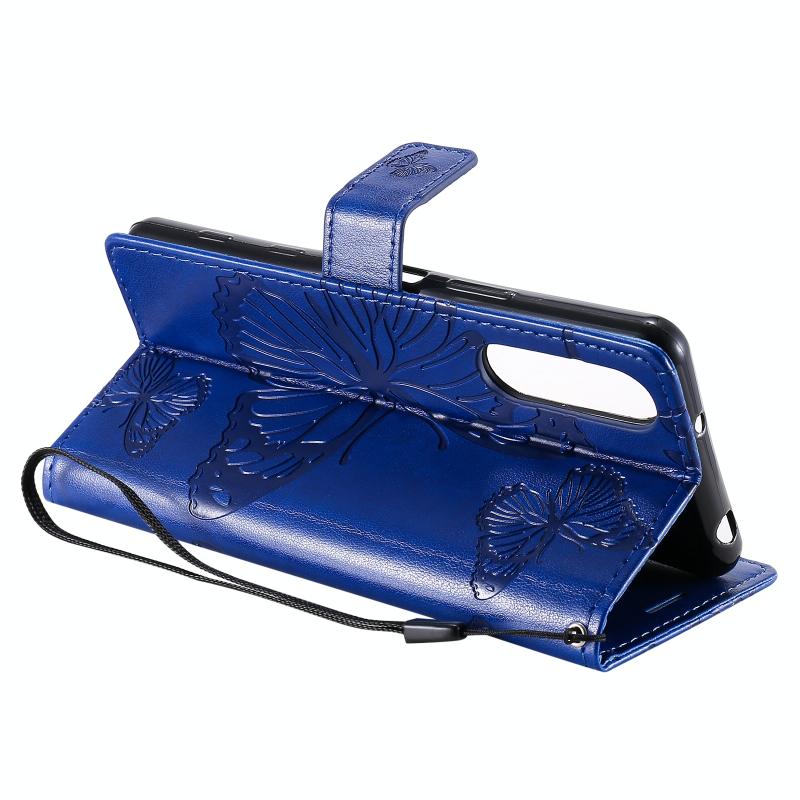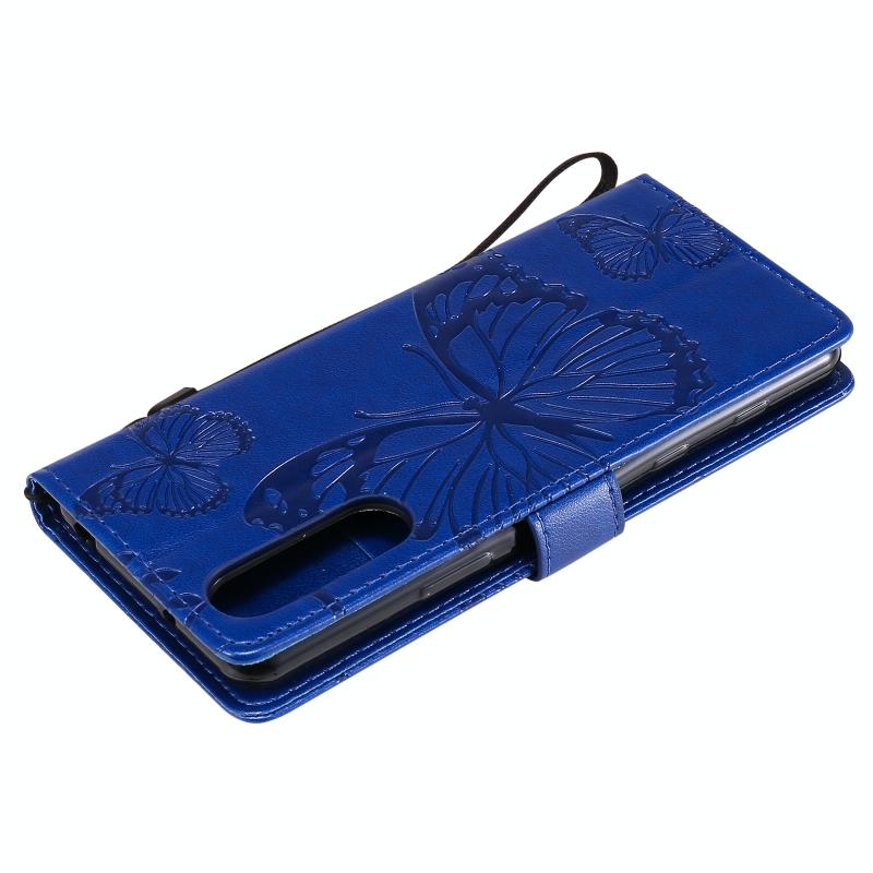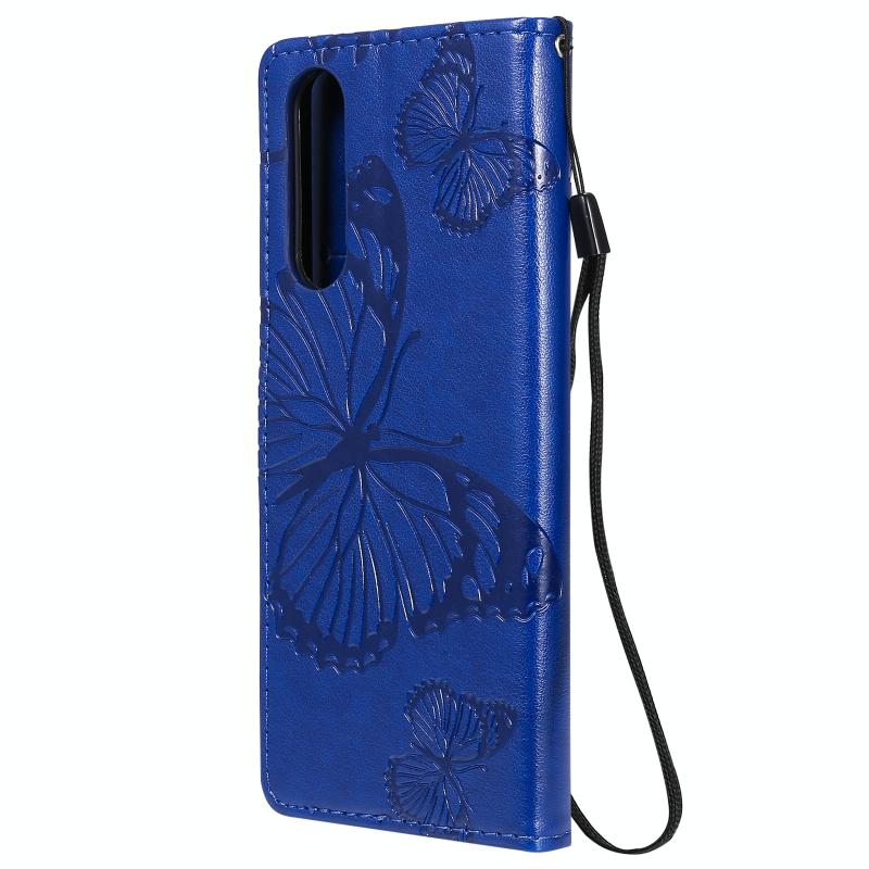 Θήκη δέρματος οριζόντιας αναδίπλωσης για Sony Xperia 5 II με ανάγλυφο σχέδιο 3D πεταλούδων, με βάση & υποδοχή κάρτας & πορτοφόλι (Μπλε)