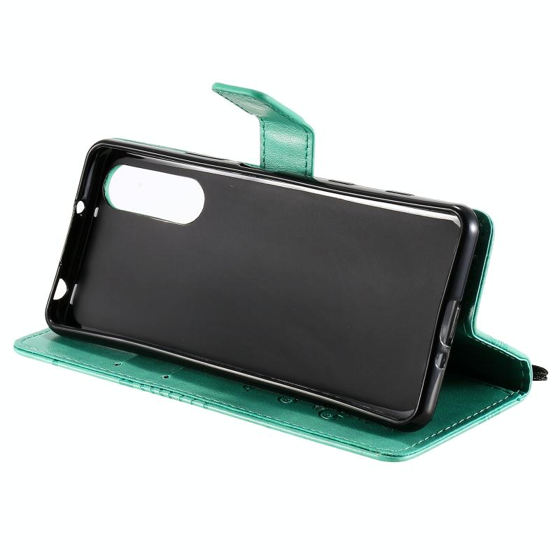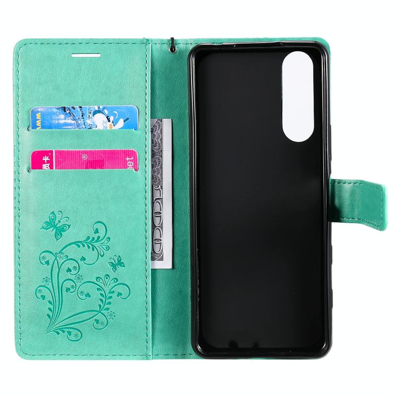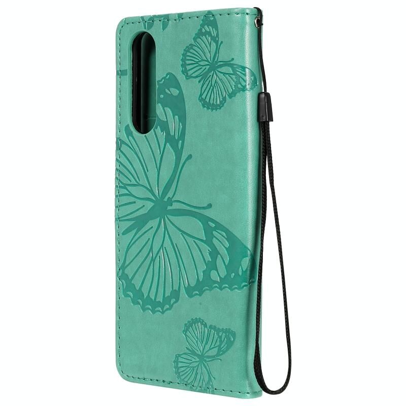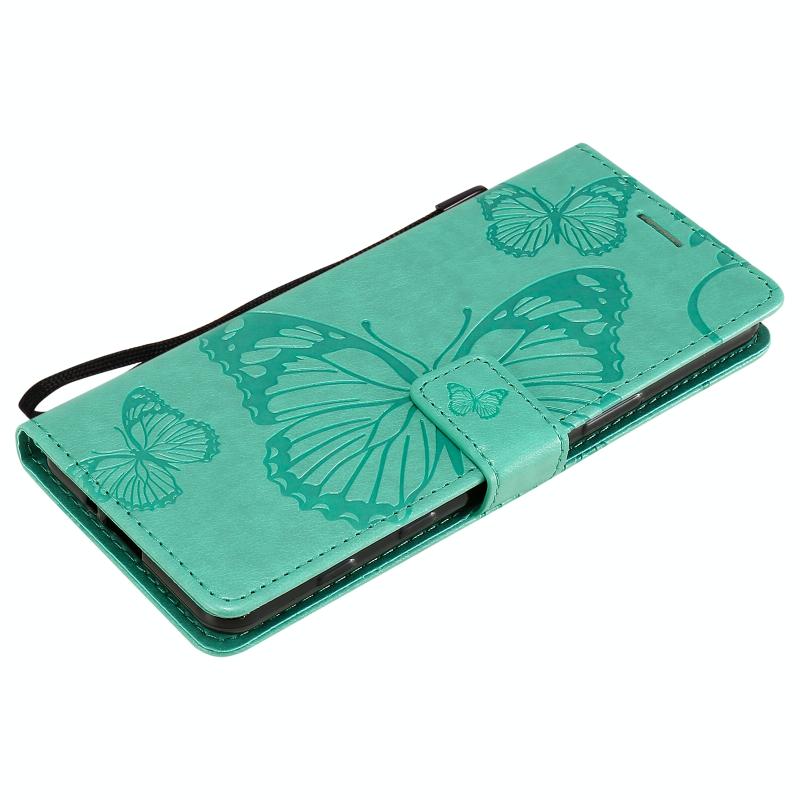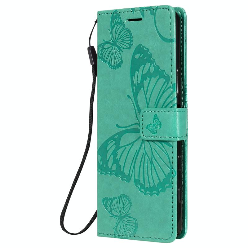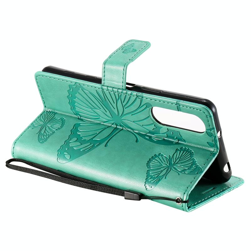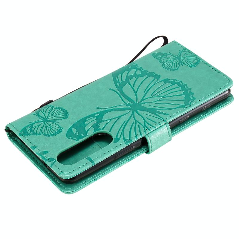 Θήκη δέρματος οριζόντιας αναδίπλωσης για Sony Xperia 5 II με ανάγλυφο σχέδιο 3D πεταλούδων, με βάση & υποδοχή κάρτας & πορτοφόλι (πράσινο)