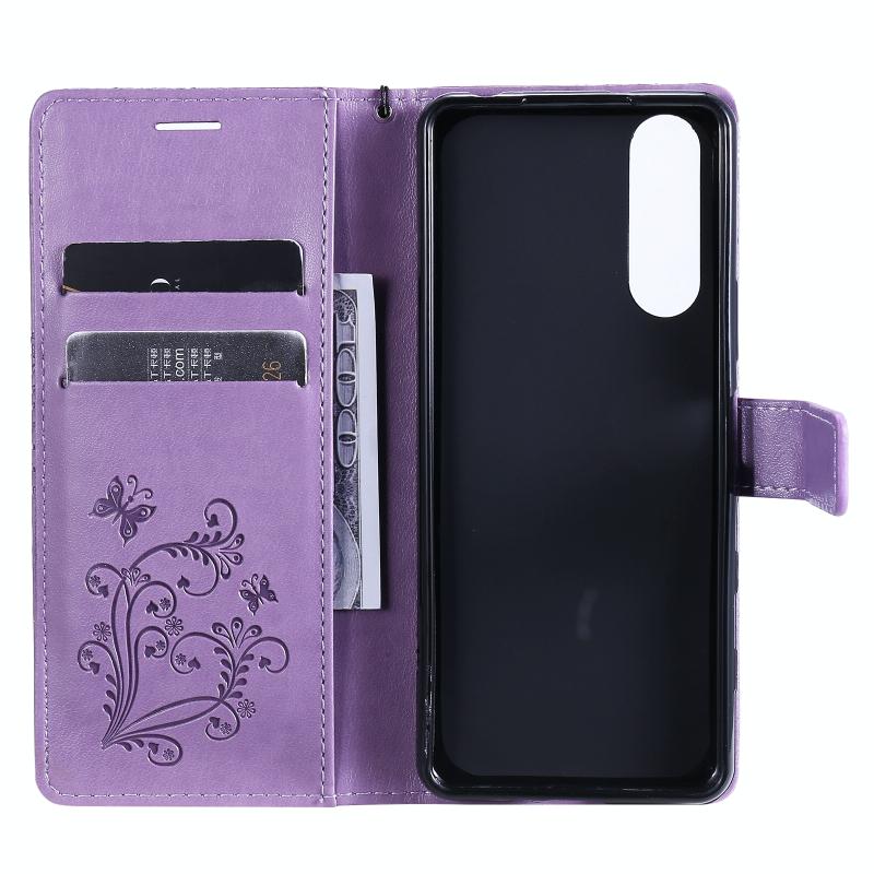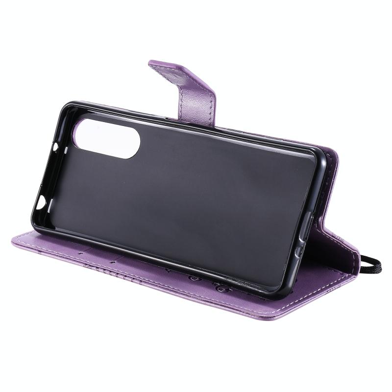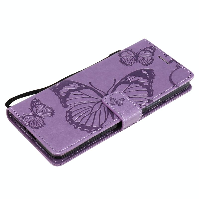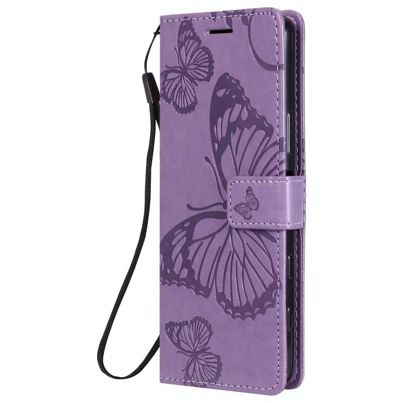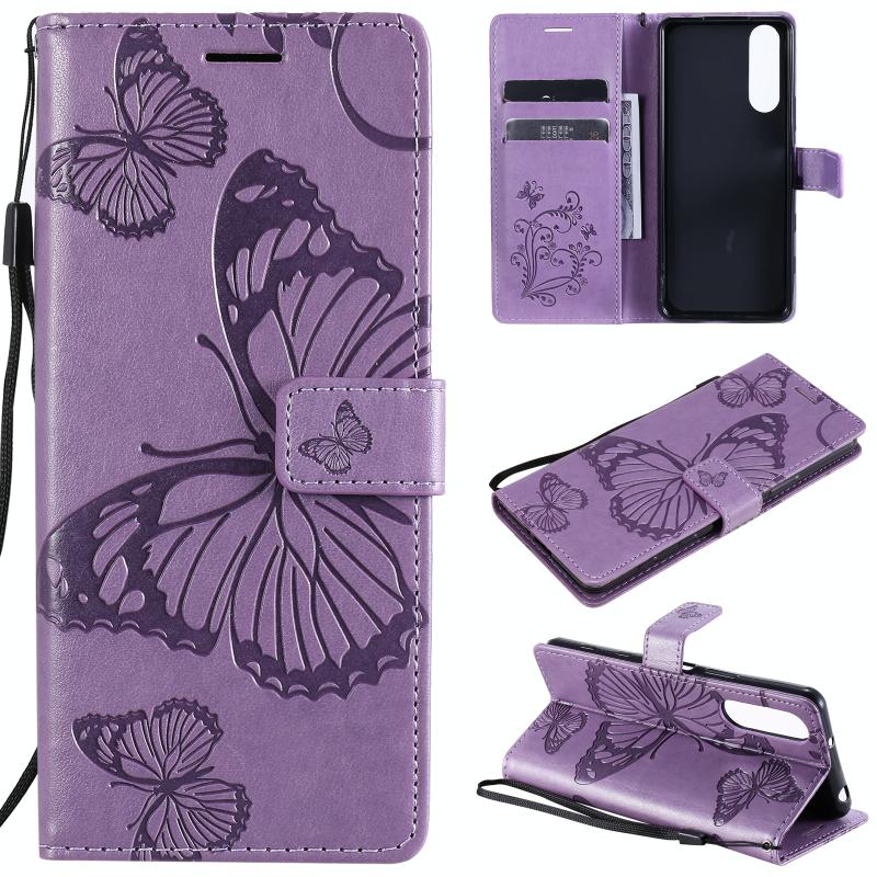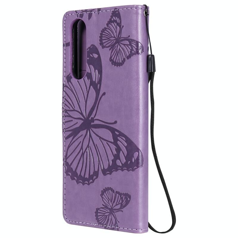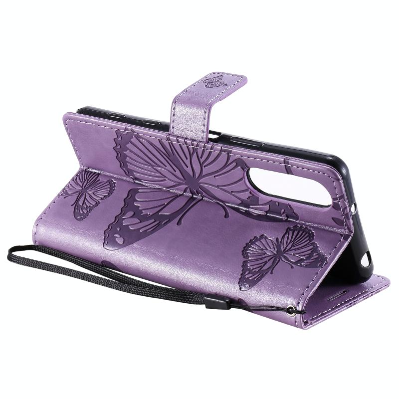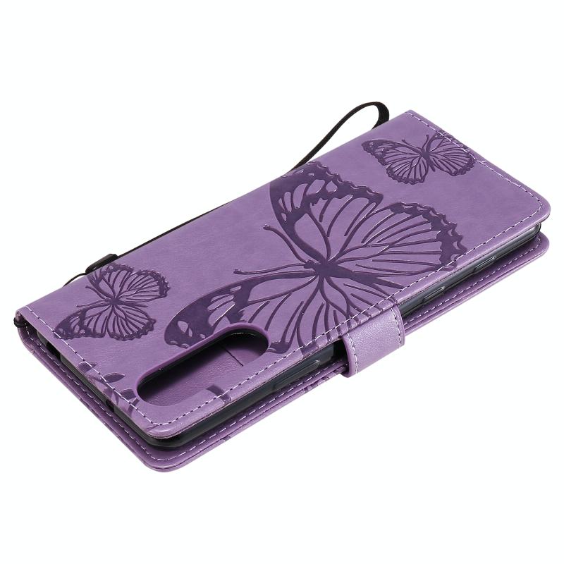 Θήκη δέρματος οριζόντιας αναδίπλωσης για Sony Xperia 5 II με ανάγλυφο σχέδιο 3D πεταλούδων, με βάση & υποδοχή κάρτας & πορτοφόλι (Μωβ)