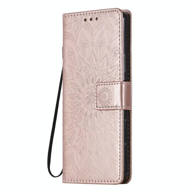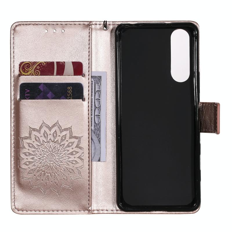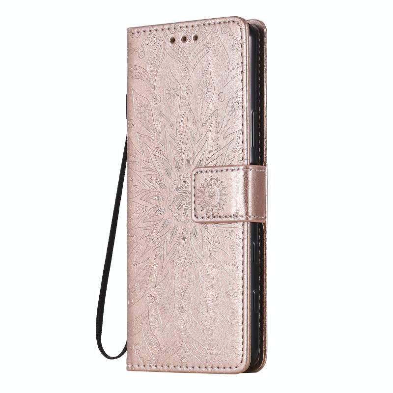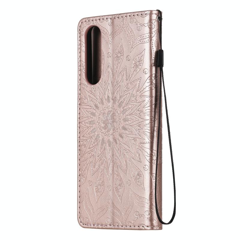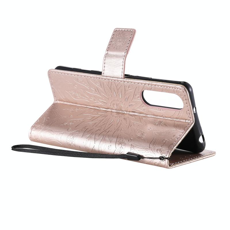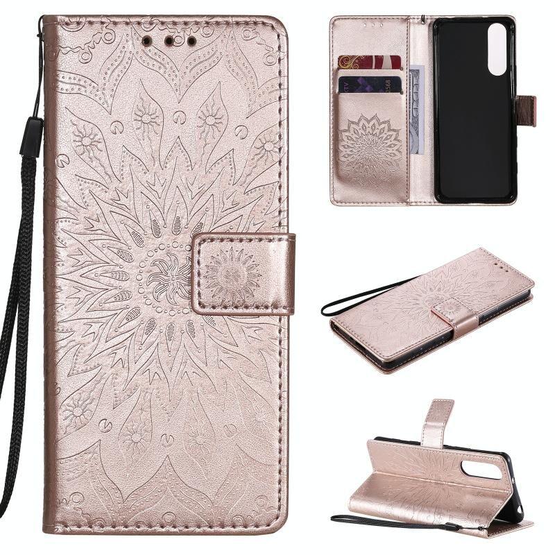 For Sony Xperia5 II Sun Embossing Pattern Horizontal Flip Leather Case with Card Slot & Holder & Wallet & Lanyard(Rose Gold)