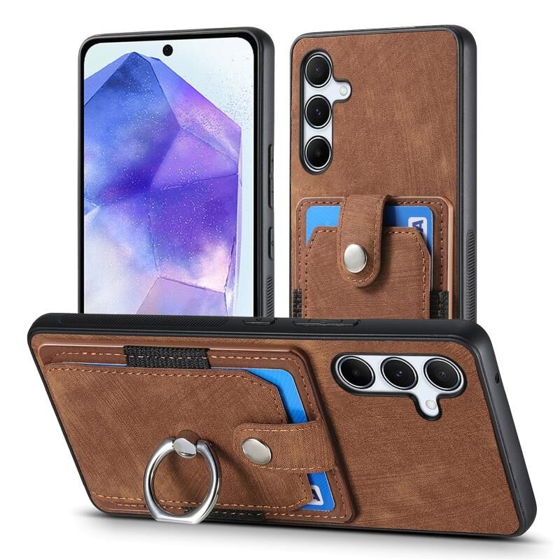 Για Sumsung Galaxy A55 5G Ρετρό δέρμα αίσθηση δαχτυλίδι κάρτα πορτοφόλι υπόθεση τηλεφώνου (καφέ)