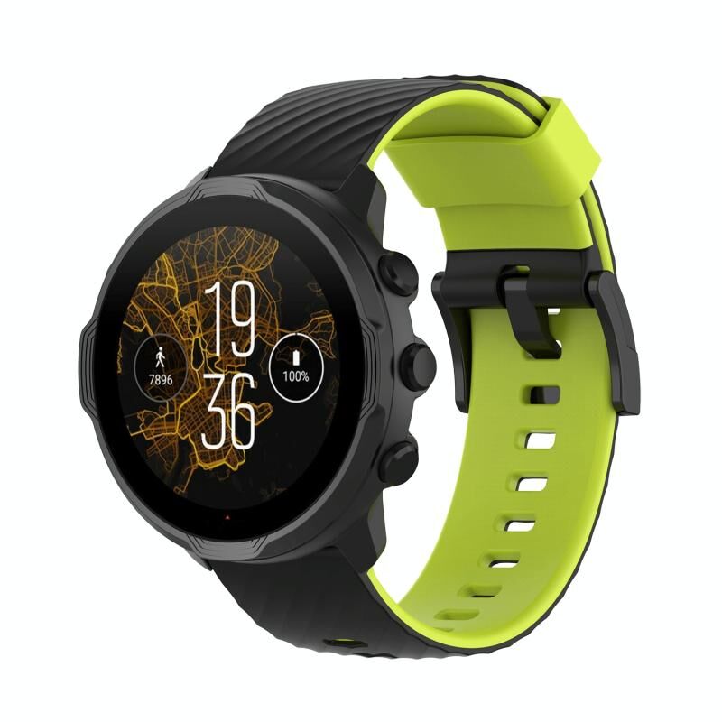 For Suunto 7 24mm Two-color Silicone Watch Band(Black Lime Green)