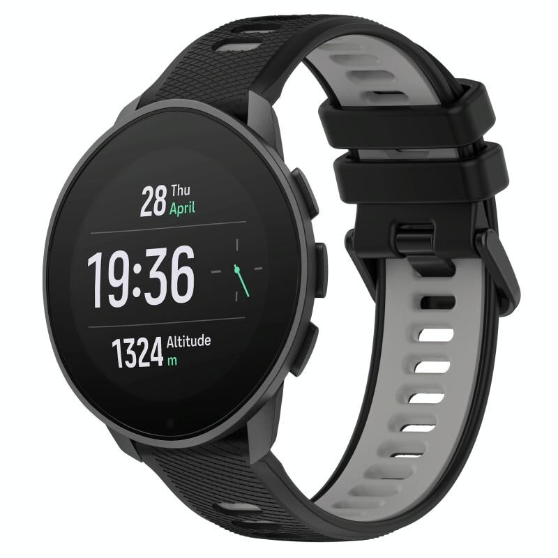 Για SUUNTO 9 Peak Pro 22mm Αθλητικό ρολόι σιλικόνης δύο χρωμάτων (μαύρο + γκρι)