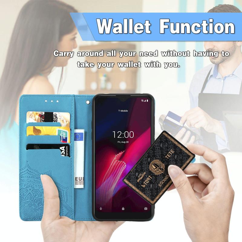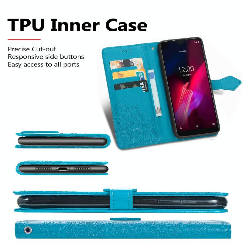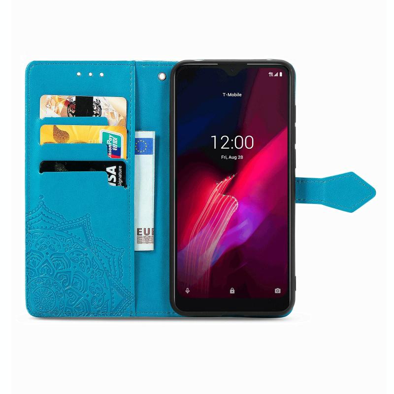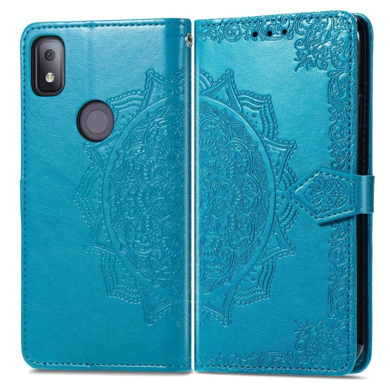 For T-Mobile Revvl 4 Mandala Flower Embossed Horizontal Flip Leather Case with Holder & Three Card Slots & Wallet & Lanyard(Blue)
