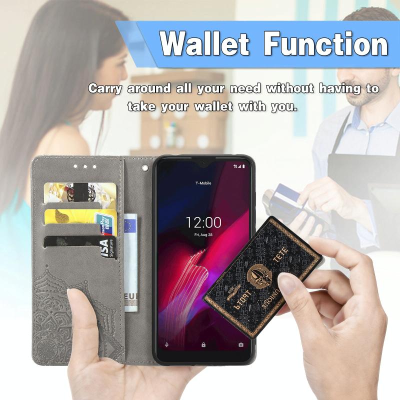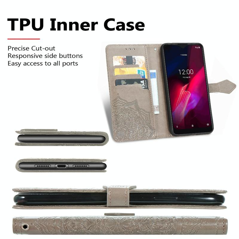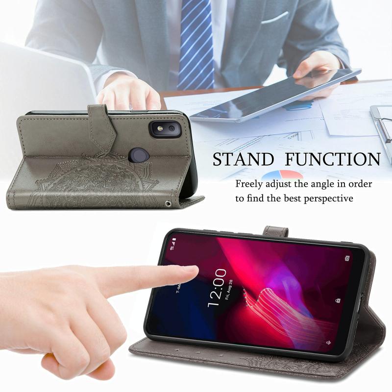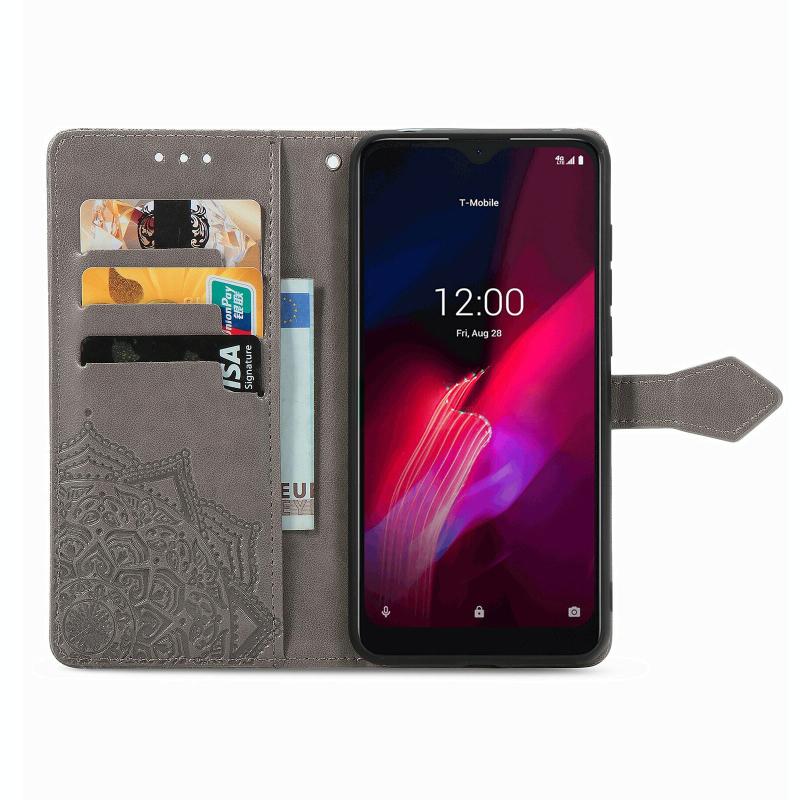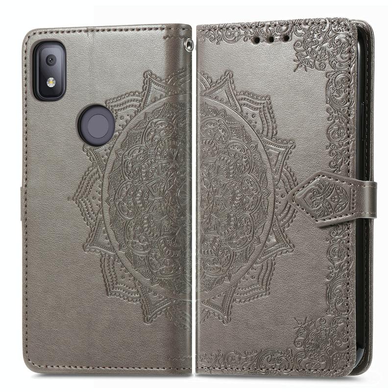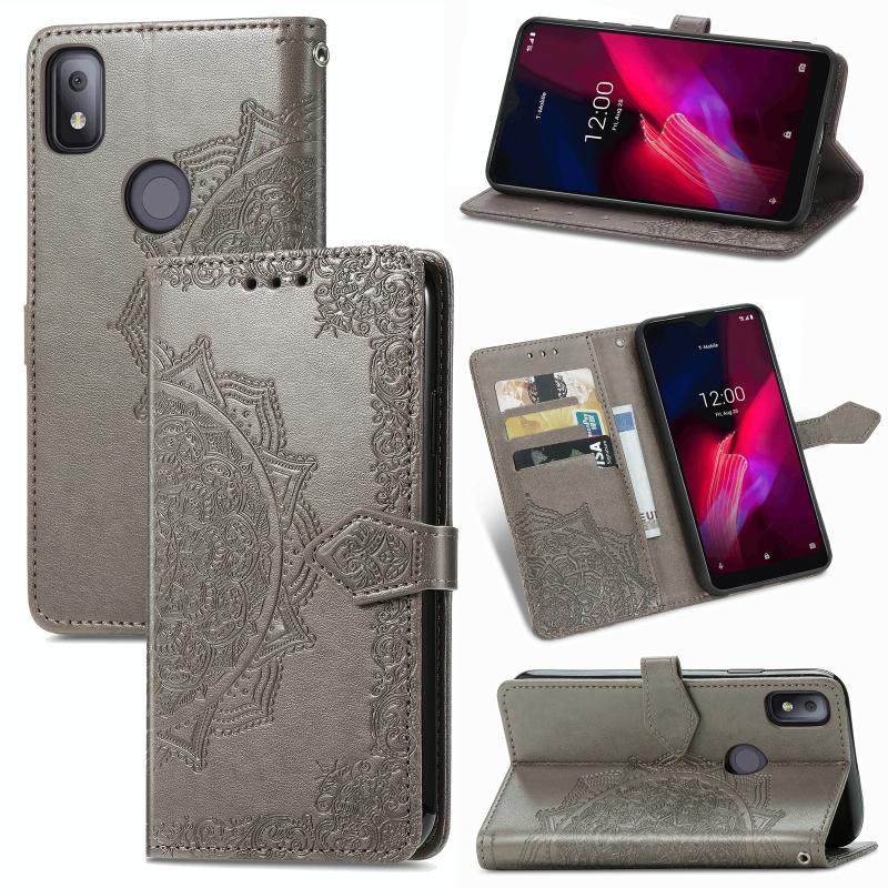 For T-Mobile Revvl 4 Mandala Flower Embossed Horizontal Flip Leather Case with Holder & Three Card Slots & Wallet & Lanyard(Grey)