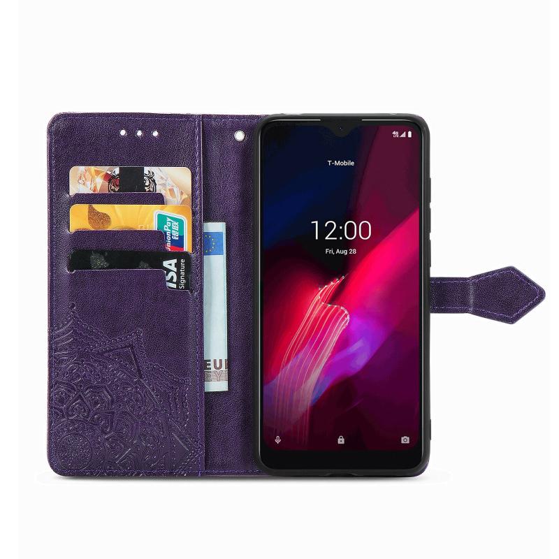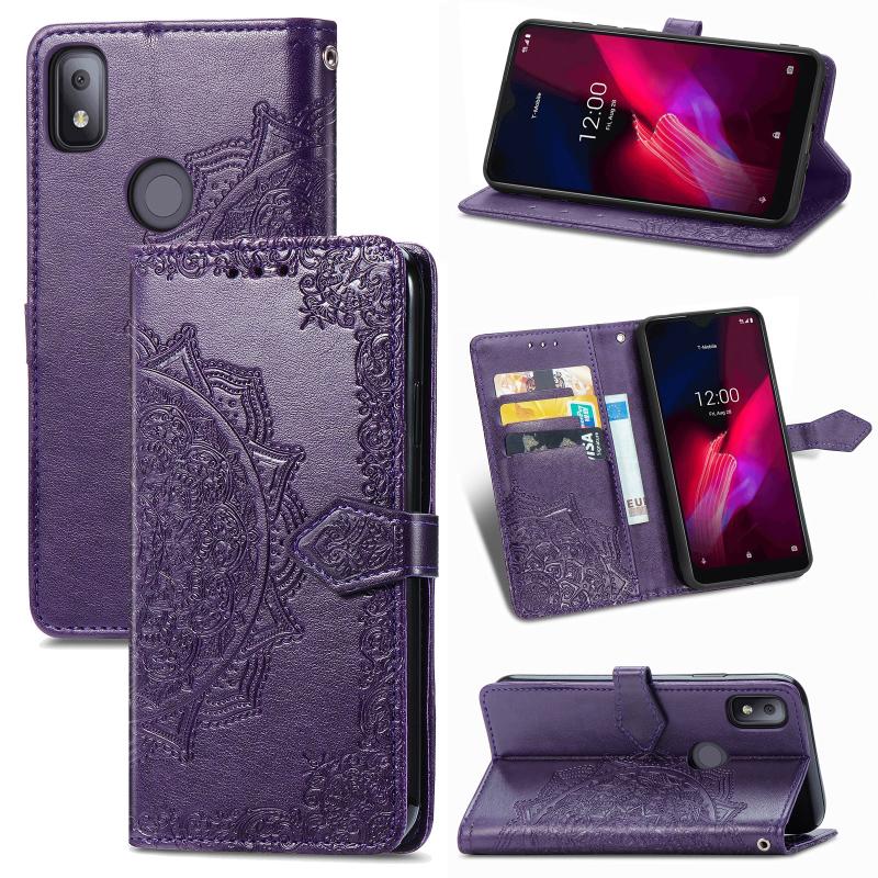 For T-Mobile Revvl 4 Mandala Flower Embossed Horizontal Flip Leather Case with Holder & Three Card Slots & Wallet & Lanyard(Purple)