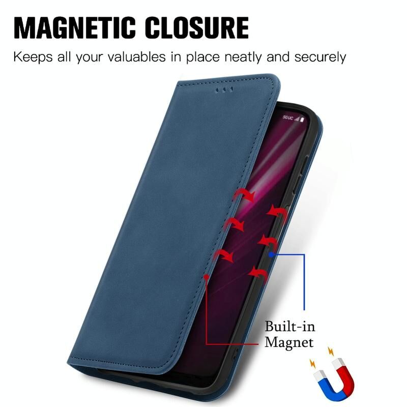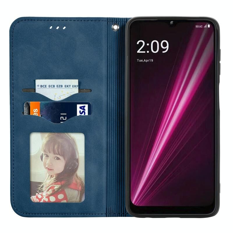 Για T-Mobile Revvl 6 5G Retro δέρμα αίσθηση μαγνητικό δέρμα τηλέφωνο υπόθεση (μπλε)