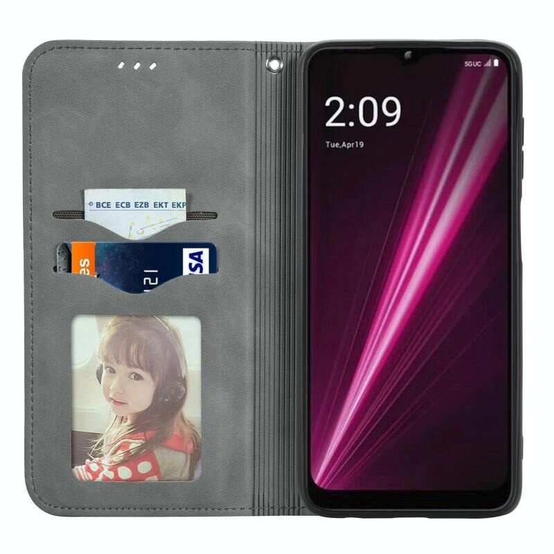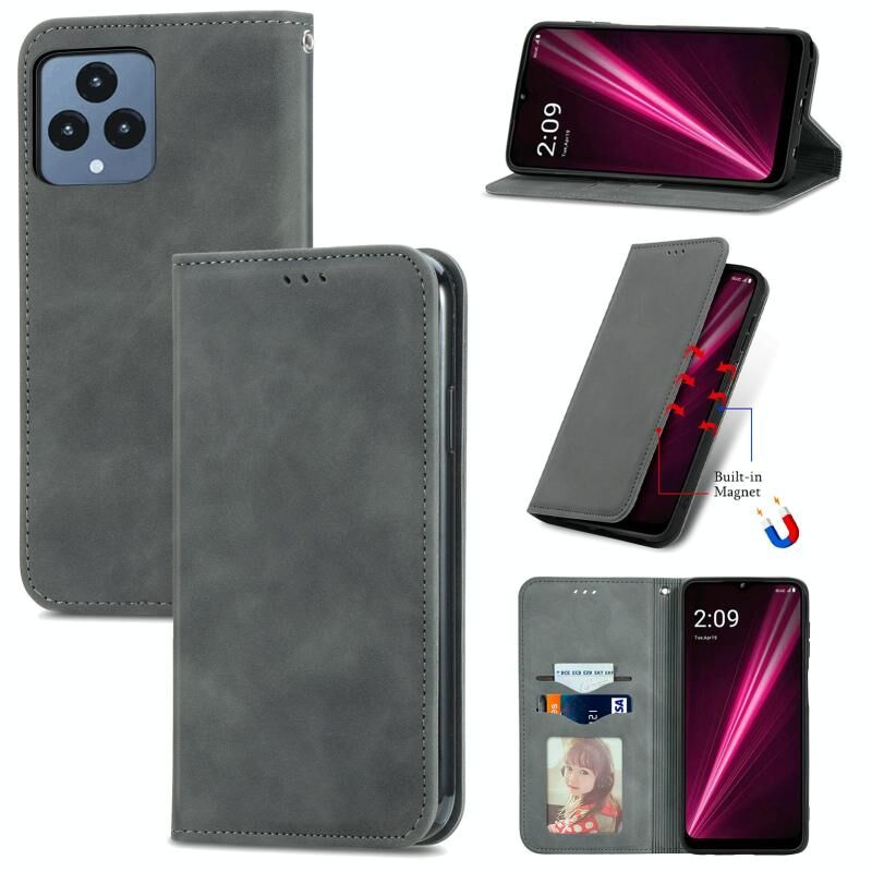 Για T-Mobile Revvl 6 5G Retro Skin Feel μαγνητική δερμάτινη θήκη τηλεφώνου (γκρι)