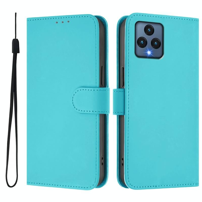 Για T-Mobile Revvl 6 5G / Revvl 6x 5G Skin Feel Solid Color Δερμάτινη θήκη τηλεφώνου με κορδόνι (Lake Blue)