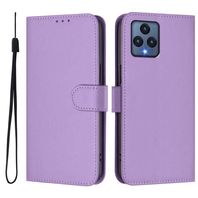 Για T-Mobile Revvl 6 5G / Revvl 6x 5G δέρμα αίσθηση στερεό χρώμα δερμάτινη θήκη τηλεφώνου με κορδόνι (μωβ λεβάντα)