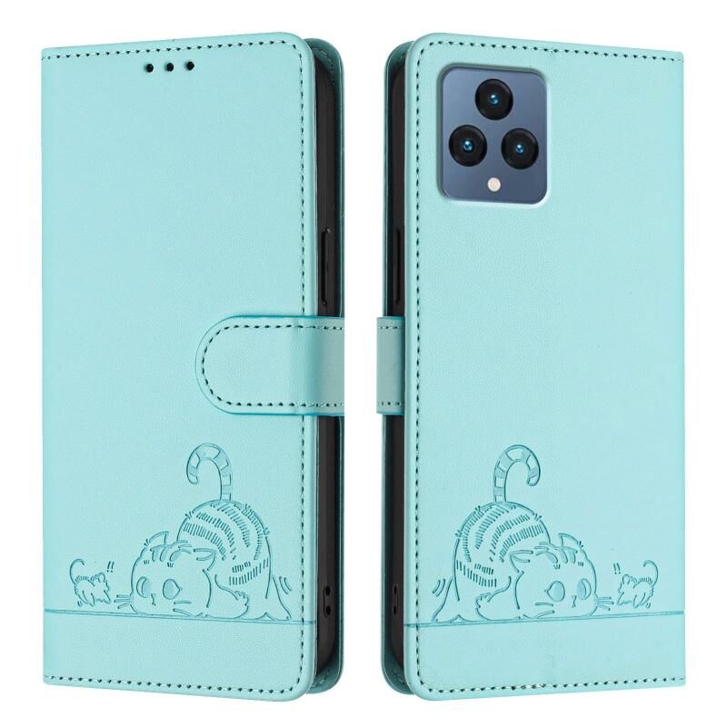 Θήκη τηλεφώνου από δέρμα με ανάγλυφο σχέδιο γάτας και σκύλου για T-Mobile REVVL 6 / 6x 5G, με κορδόνι (Μέντας Πράσινο)