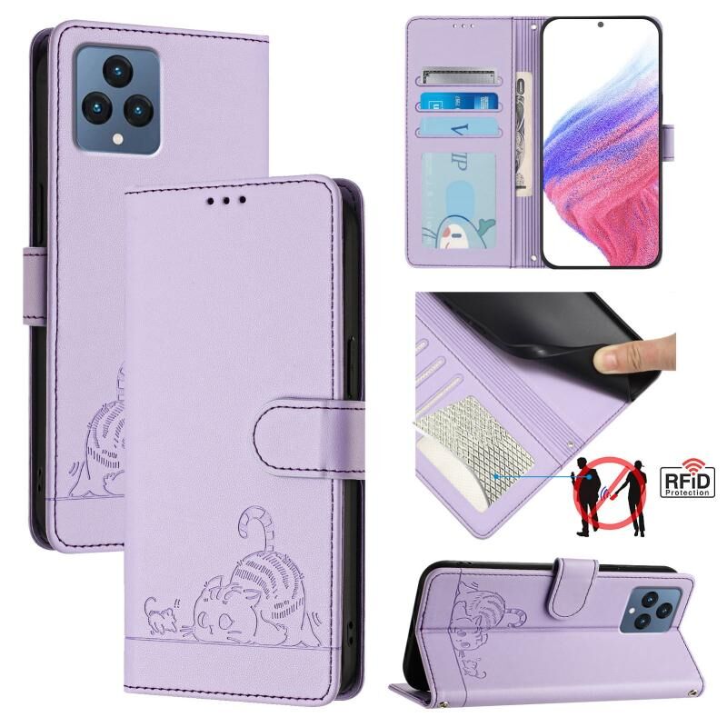 Θήκη τηλεφώνου από δέρμα με ανάγλυφο σχέδιο γάτας και σκύλου για T-Mobile REVVL 6 / 6x 5G, με κορδόνι (Μέντας Πράσινο)
