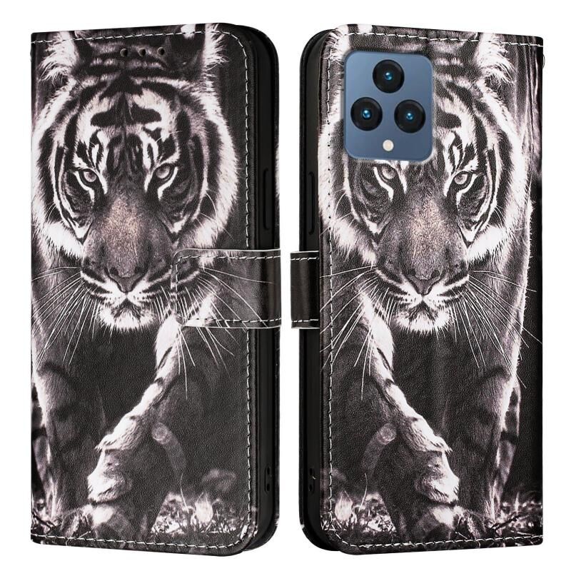 Θήκη τηλεφώνου από δέρμα με απλή ύφανση και πολύχρωμο σχέδιο για T-Mobile REVVL 6 / 6x 5G (Τριαντάφυλλα σε μαύρο φόντο)