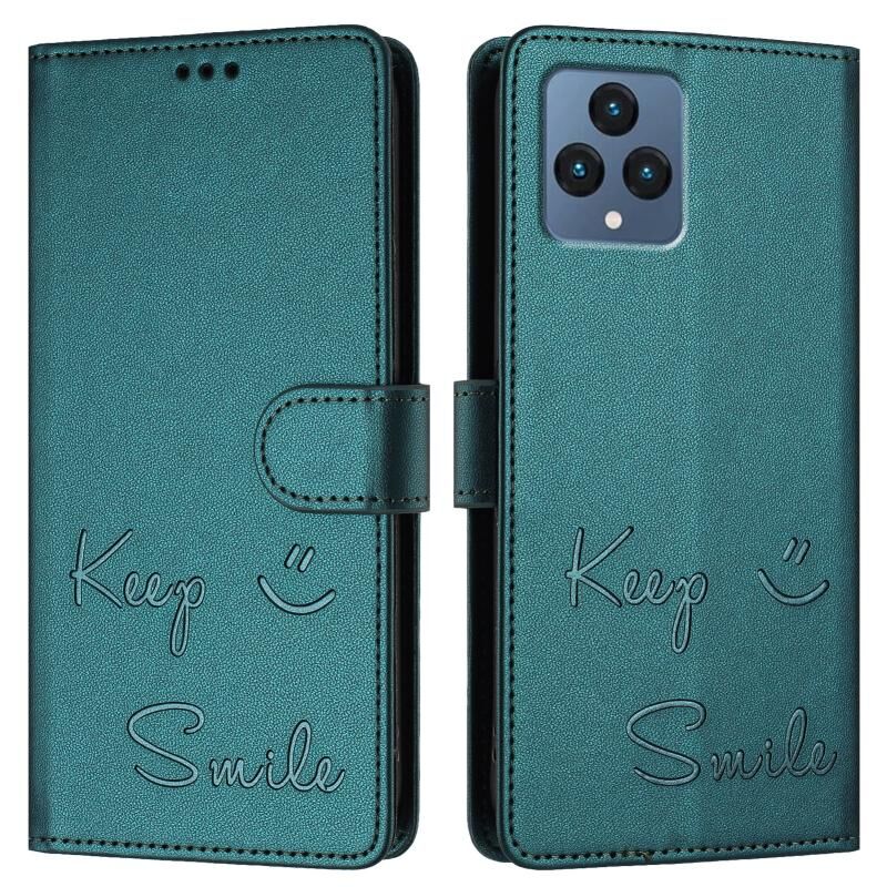 Για T-Mobile REVVL 6 / 6x 5G Χαμόγελο ανάγλυφο RFID δερμάτινη θήκη τηλεφώνου (Πράσινο παγώνι)