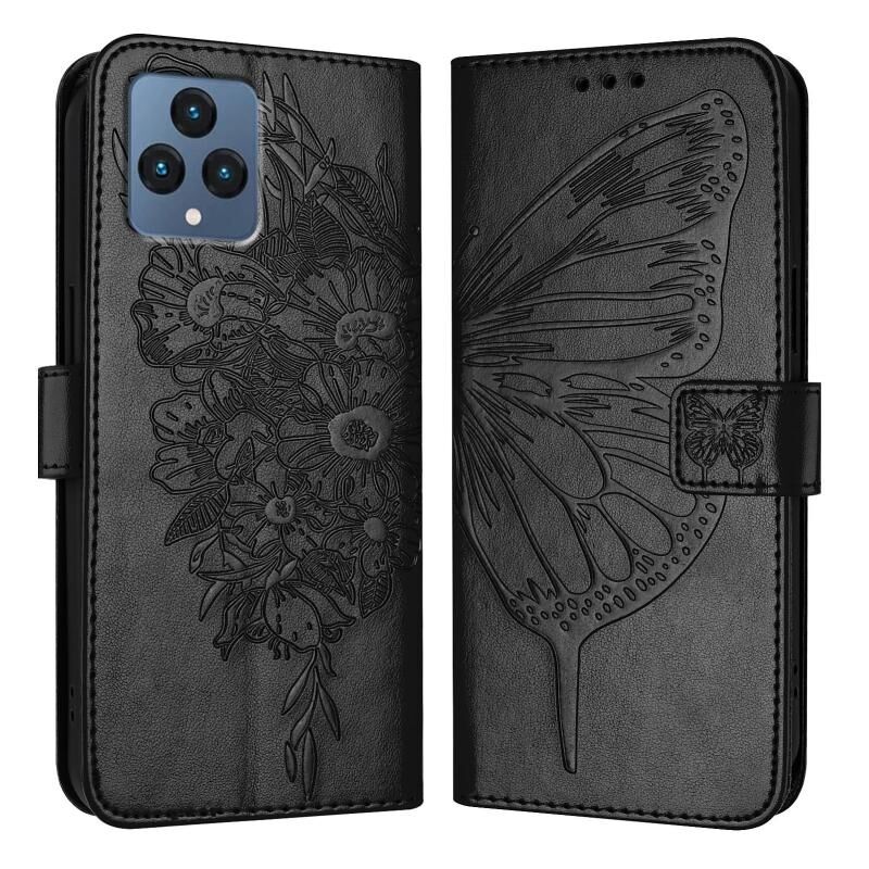 Για T-Mobile REVVL 6 / 6x ανάγλυφη πεταλούδα δερμάτινη θήκη τηλεφώνου (Μαύρο)