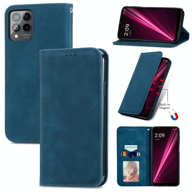 Για T-Mobile Revvl 6 Pro 5G Retro δέρμα αίσθηση μαγνητική υπόθεση τηλέφωνο δέρμα (μπλε)