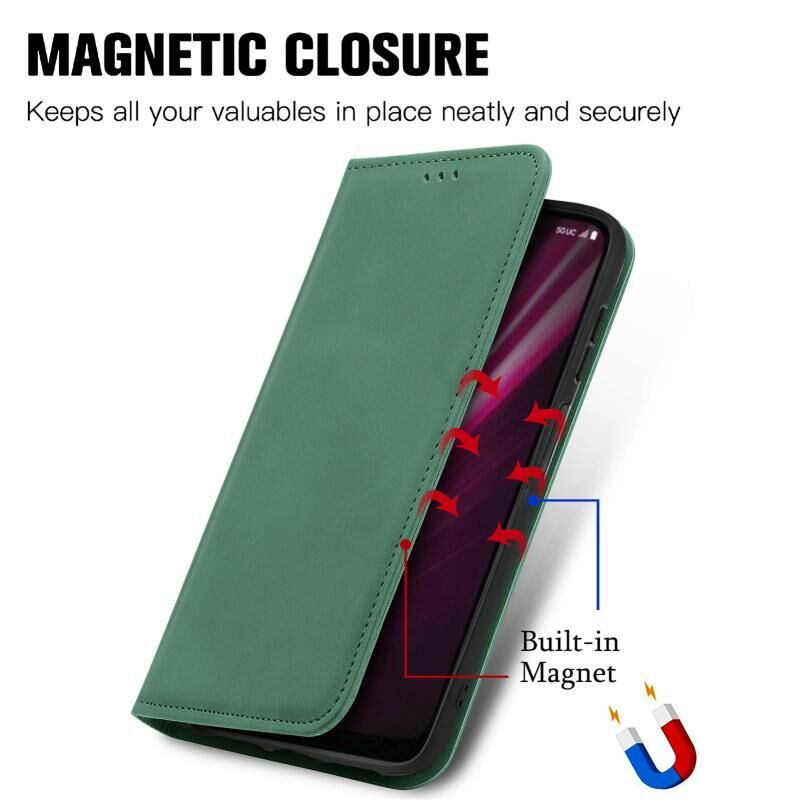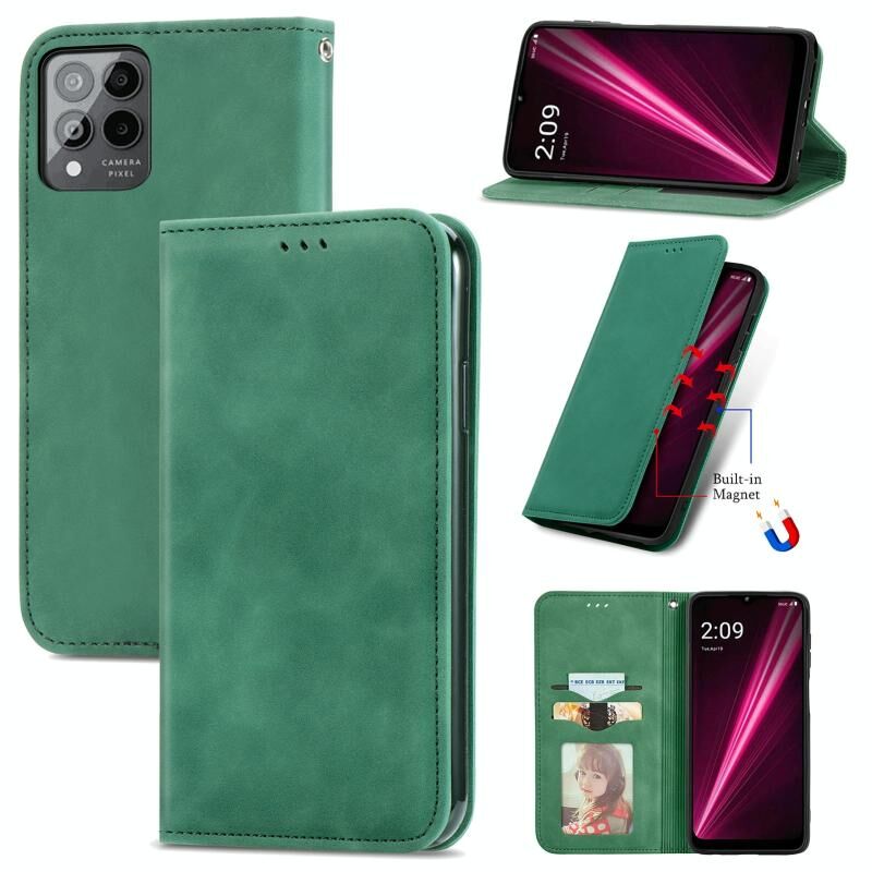 Για T-Mobile Revvl 6 Pro 5G Retro δέρμα αίσθηση μαγνητικό δέρμα τηλέφωνο υπόθεση (Πράσινο)