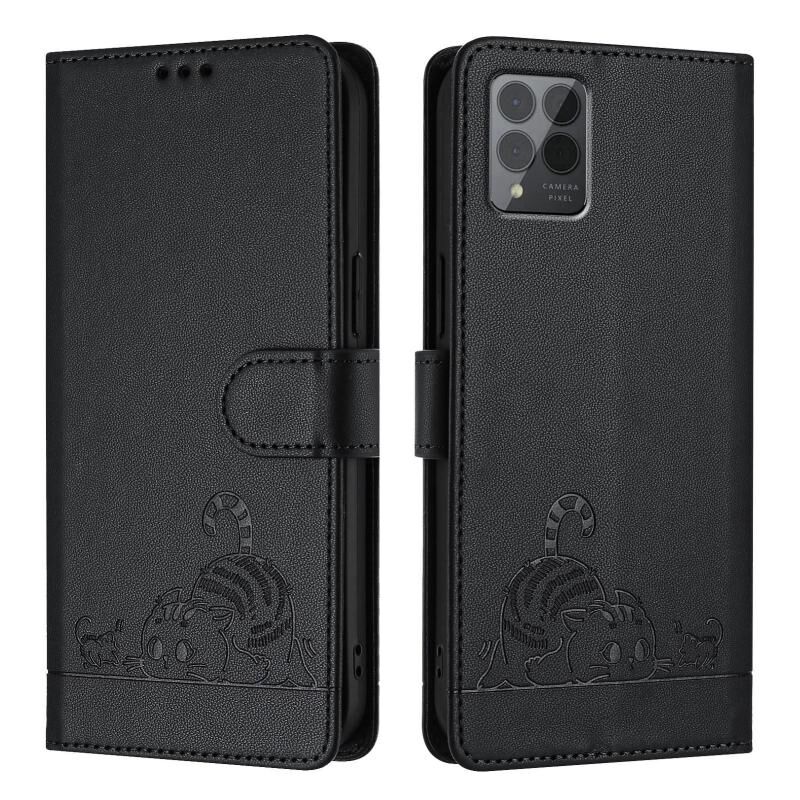 Θήκη τηλεφώνου από δέρμα με ανάγλυφο σχέδιο γάτας και λουρί για T-Mobile REVVL 6 Pro / 6x Pro (Μέντας Πράσινο)