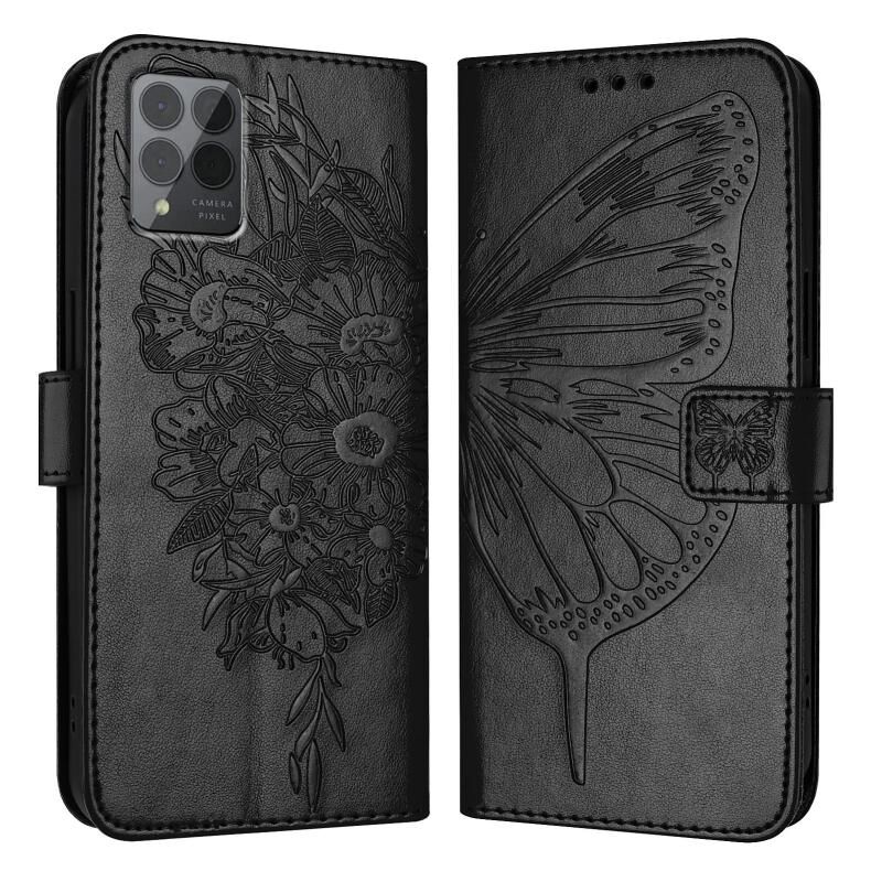 Για T-Mobile REVVL 6 Pro / 6x Pro ανάγλυφη πεταλούδα δερμάτινη θήκη τηλεφώνου (μαύρο)