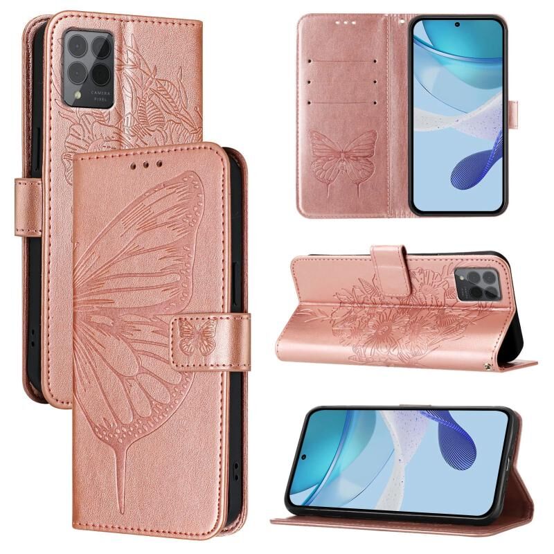 Για T-Mobile REVVL 6 Pro / 6x Pro ανάγλυφη πεταλούδα δερμάτινη θήκη τηλεφώνου (Ροζ χρυσός)