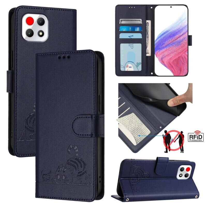 Θήκη τηλεφώνου από δέρμα με ανάγλυφο σχέδιο γάτας και σκίουρου για T-Mobile REVVL 7 5G με κορδόνι (Μέντας Πράσινο)