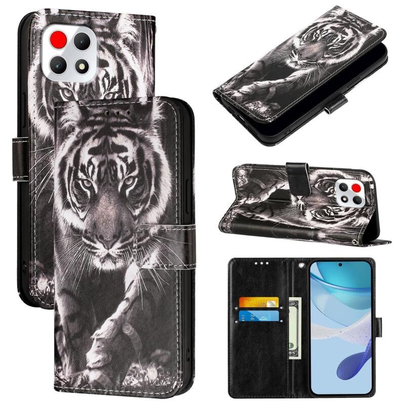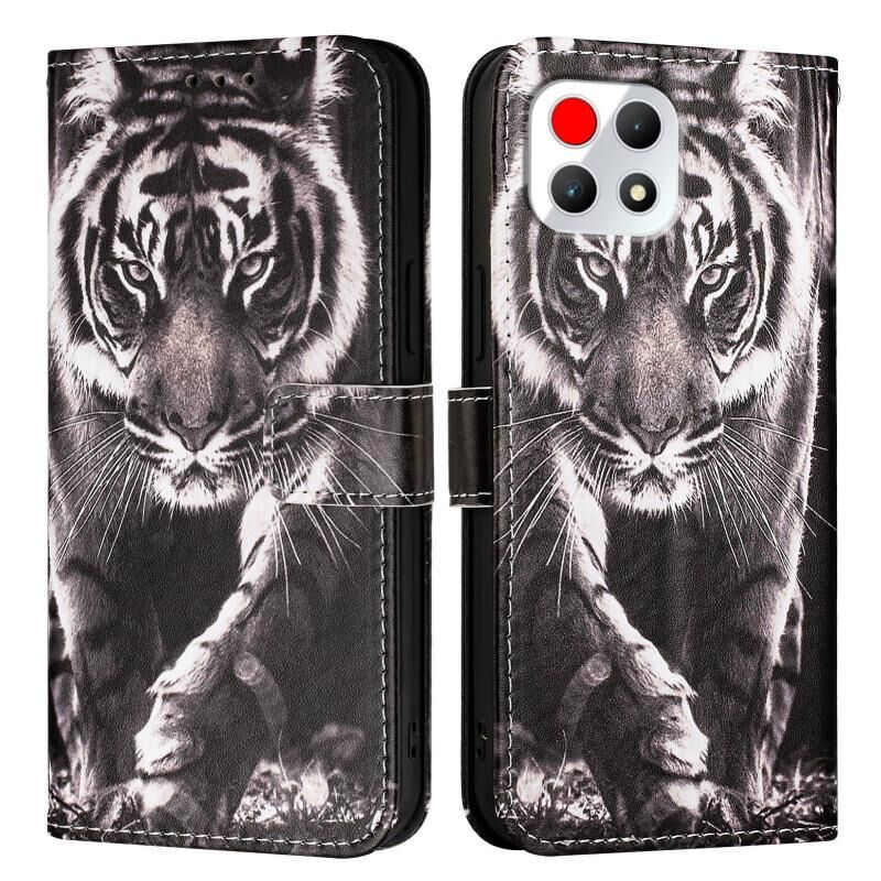 Θήκη τηλεφώνου από δέρμα με απλή ύφανση για T-Mobile REVVL 7 5G με έγχρωμο σχέδιο (Τριαντάφυλλα σε μαύρο φόντο)