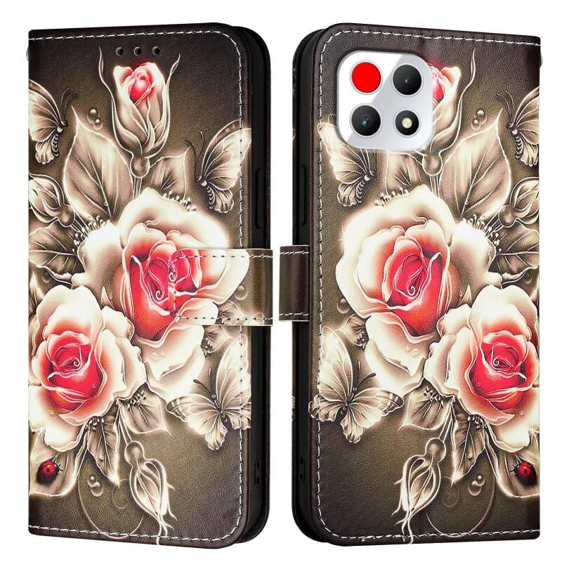 Θήκη τηλεφώνου από δέρμα με απλή ύφανση για T-Mobile REVVL 7 5G με έγχρωμο σχέδιο (Τριαντάφυλλα σε μαύρο φόντο)
