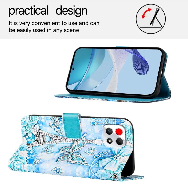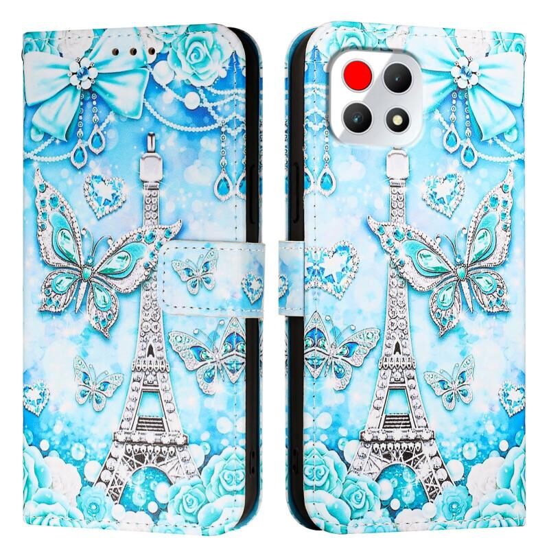 Θήκη τηλεφώνου από δέρμα με απλή ύφανση για T-Mobile REVVL 7 5G με έγχρωμο σχέδιο (Πύργος Πεταλούδας)