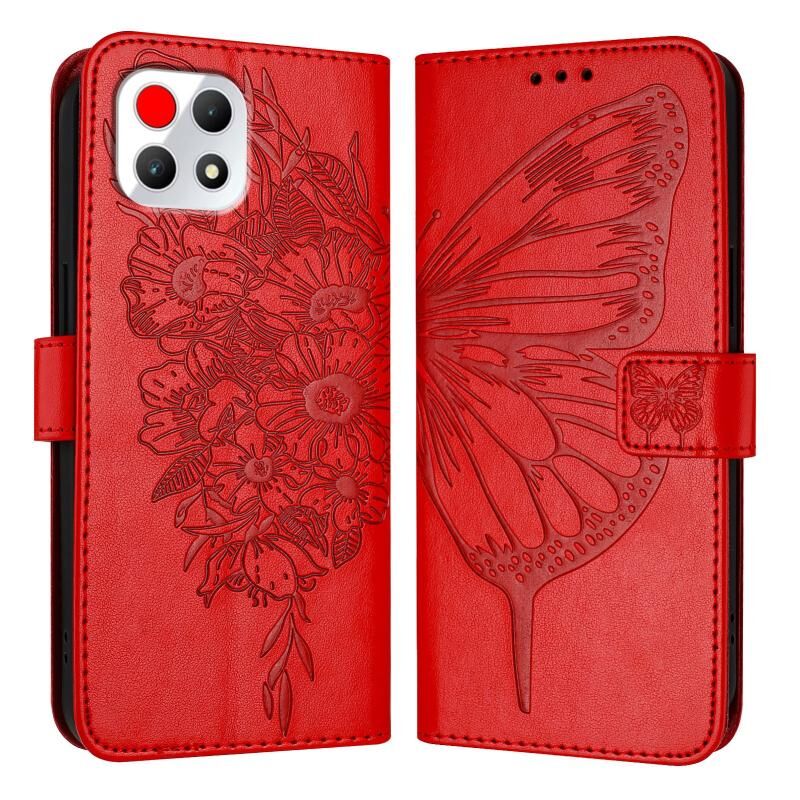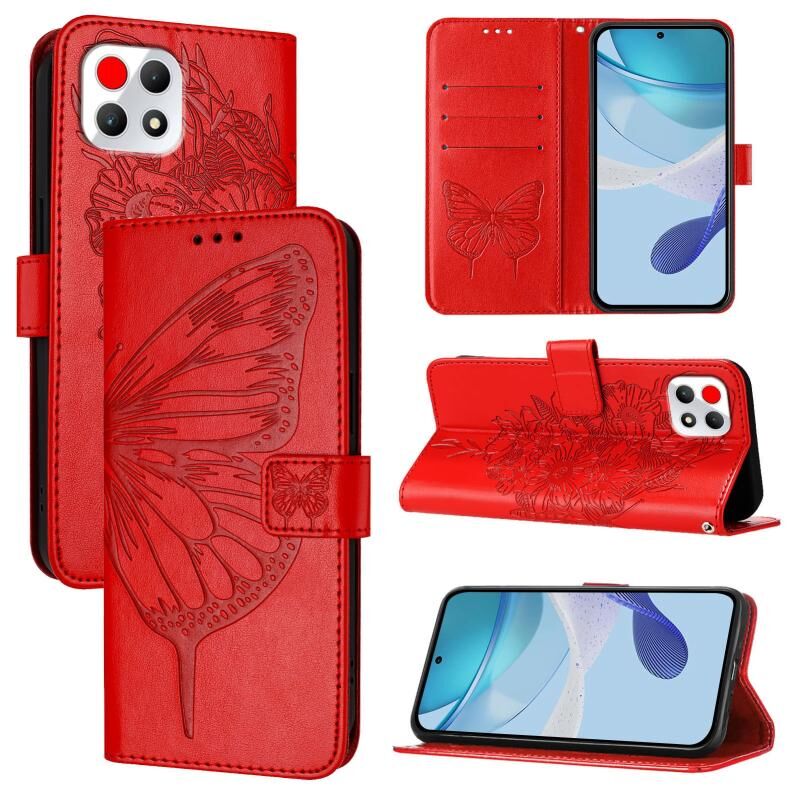 Για T-Mobile REVVL 7 5G ανάγλυφη πεταλούδα δερμάτινη θήκη τηλεφώνου (κόκκινο)