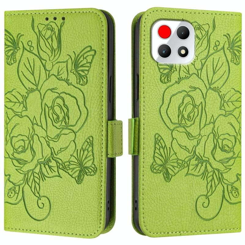 Για T-Mobile Revvl 7 5G ανάγλυφο Rose RFID Anti-theft Δερμάτινη θήκη τηλεφώνου (Πράσινο)