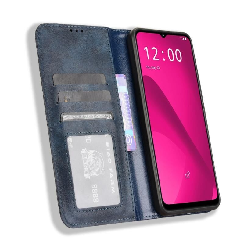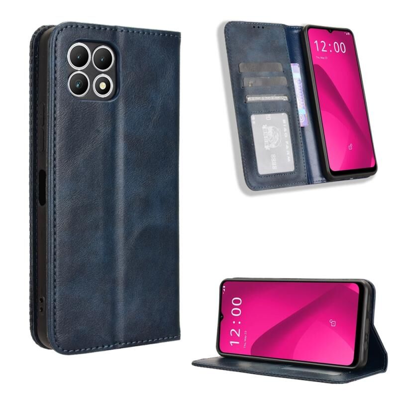Για T-Mobile Revvl 7 5G μαγνητική πόρπη ρετρό υφή δερμάτινη θήκη τηλεφώνου (μπλε)