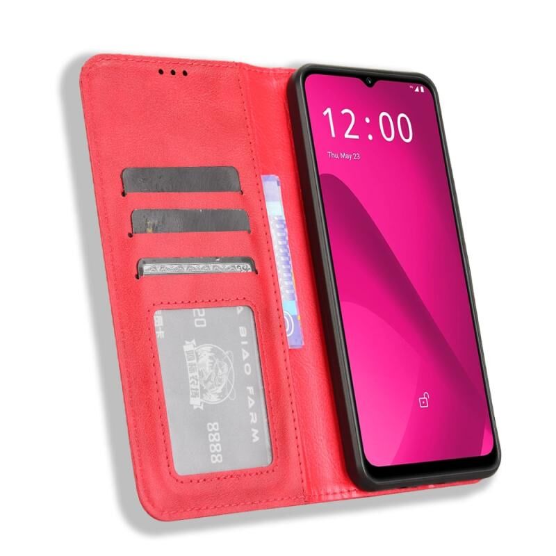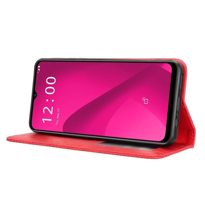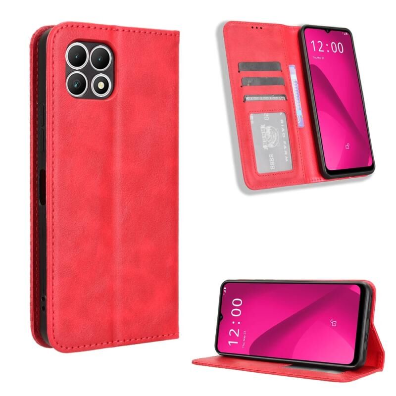 Για T-Mobile Revvl 7 5G Μαγνητική πόρπη ρετρό υφή δερμάτινη θήκη τηλεφώνου (κόκκινο)