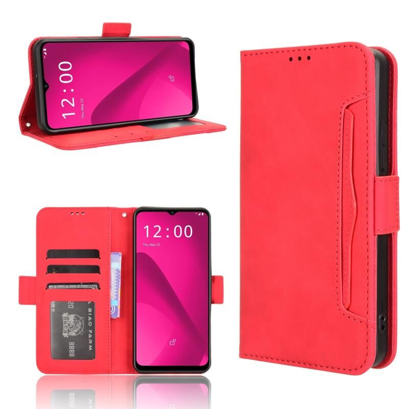 Για T-Mobile Revvl 7 5G δέρμα αίσθηση μοσχάρι υφή κάρτα υποδοχές δερμάτινη θήκη τηλεφώνου (κόκκινο)