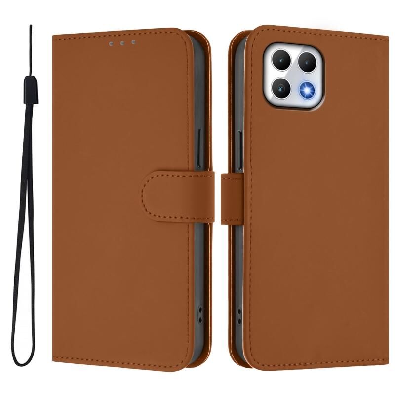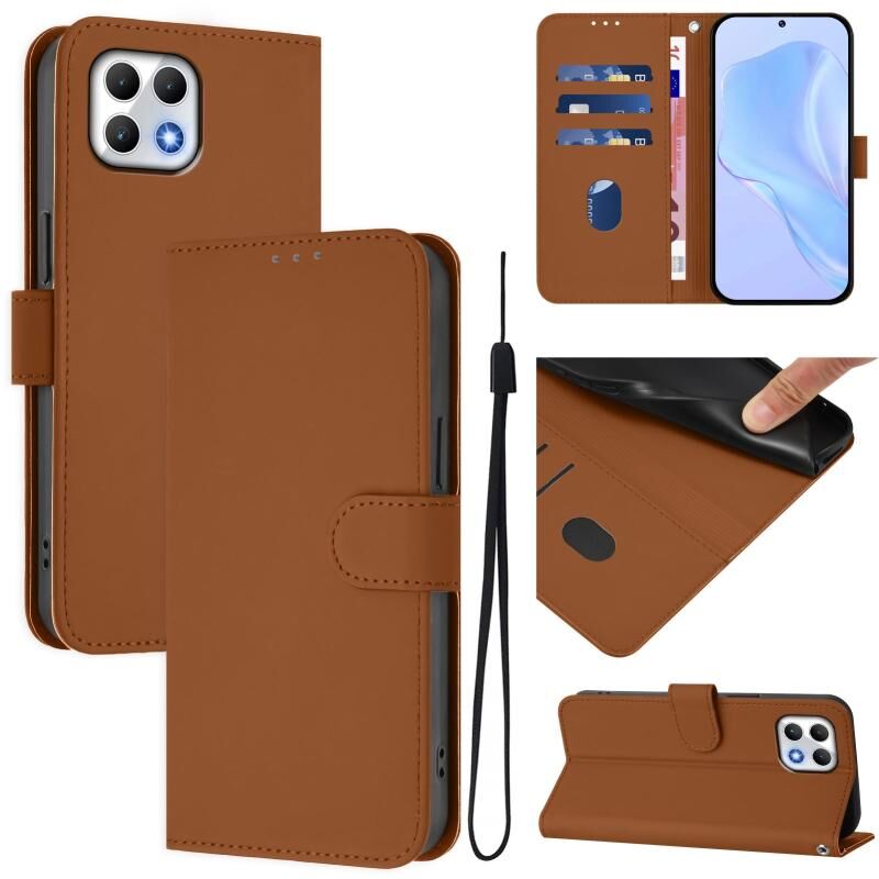Για T-Mobile Revvl 7 5G δέρμα αίσθηση Solid Color δέρμα τηλέφωνο υπόθεση με κορδόνι (καφέ)