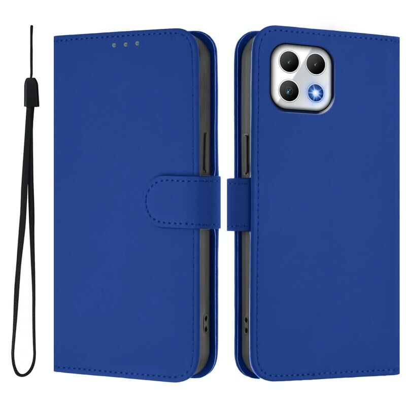 Για T-Mobile Revvl 7 5G δέρμα αίσθηση Solid Color δέρμα τηλέφωνο υπόθεση με κορδόνι (σκούρο μπλε)