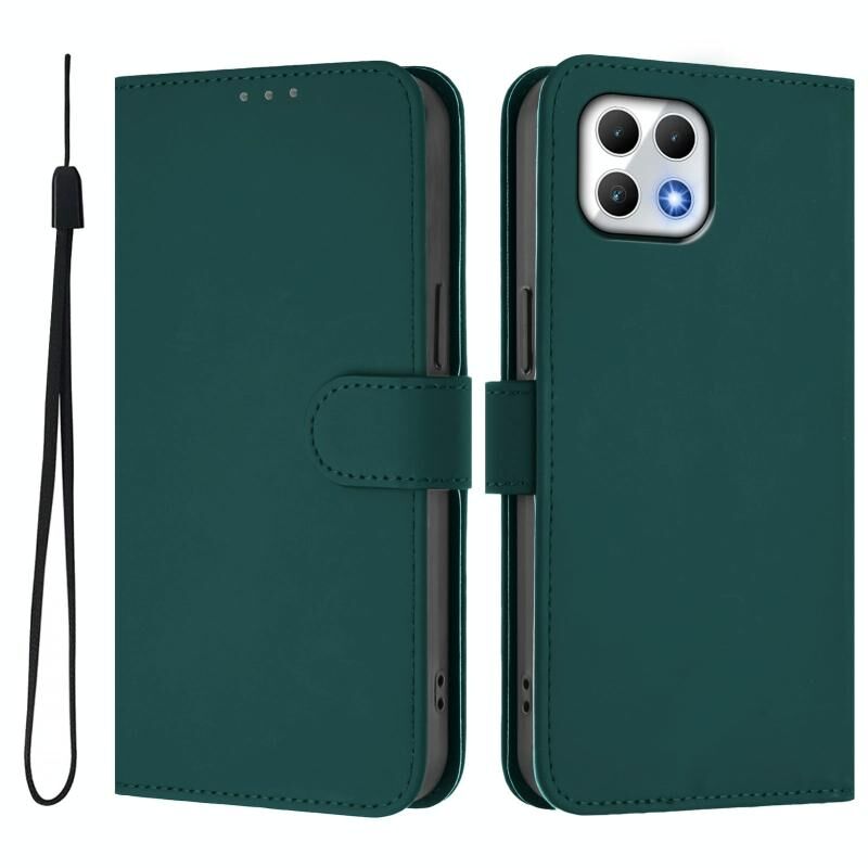Για T-Mobile Revvl 7 5G δέρμα αίσθηση Solid Color δέρμα τηλέφωνο υπόθεση με κορδόνι (σκούρο πράσινο)