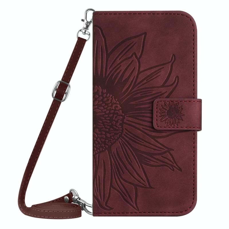 Για T-Mobile REVVL 7 5G Skin Feel Sun Flower Ανάγλυφο Flip δερμάτινη θήκη τηλεφώνου με κορδόνι (κόκκινο κρασί)
