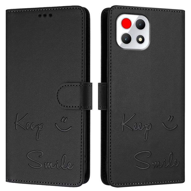 Για T-Mobile REVVL 7 5G Χαμόγελο ανάγλυφο RFID δερμάτινη θήκη τηλεφώνου (Μαύρο)