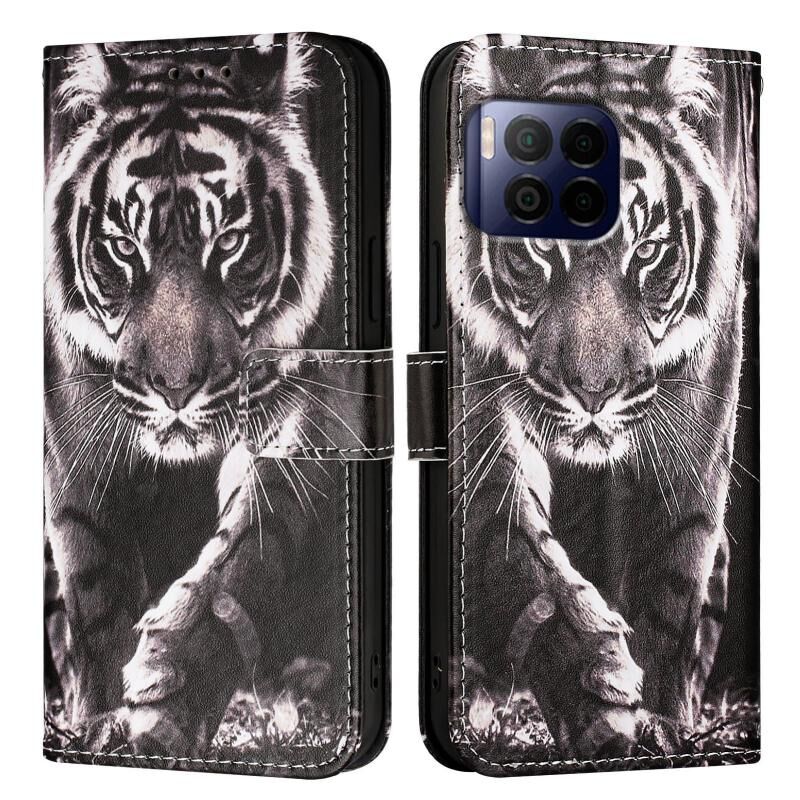Θήκη τηλεφώνου από δέρμα με απλή ύφανση για T-Mobile REVVL 7 Pro 5G, με έγχρωμο σχέδιο (τίγρης σε ασπρόμαυρο).