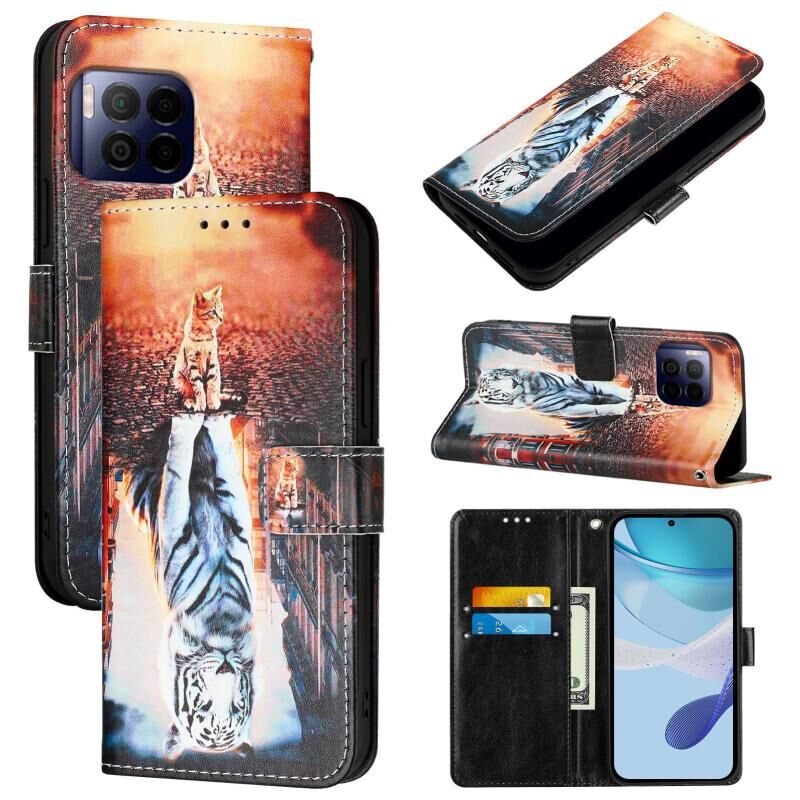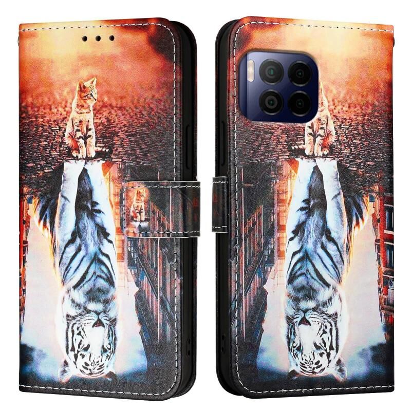 Θήκη τηλεφώνου από δέρμα με απλή ύφανση για T-Mobile REVVL 7 Pro 5G με έγχρωμο σχέδιο (Γάτες και Τίγρεις)