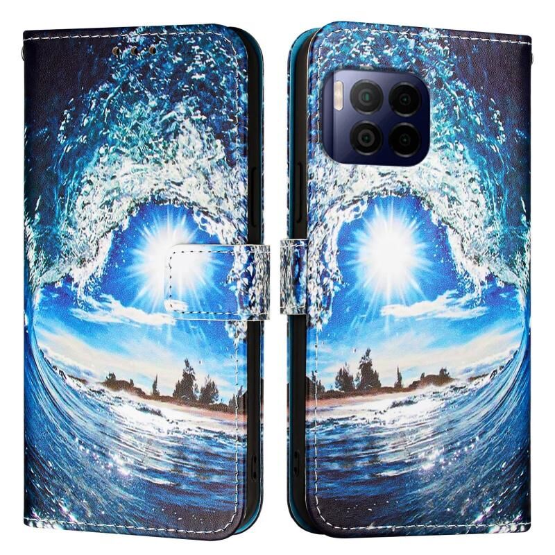 Θήκη τηλεφώνου από δέρμα με απλή ύφανση για T-Mobile REVVL 7 Pro 5G με έγχρωμο σχέδιο (Κύματα και Ήλιος)