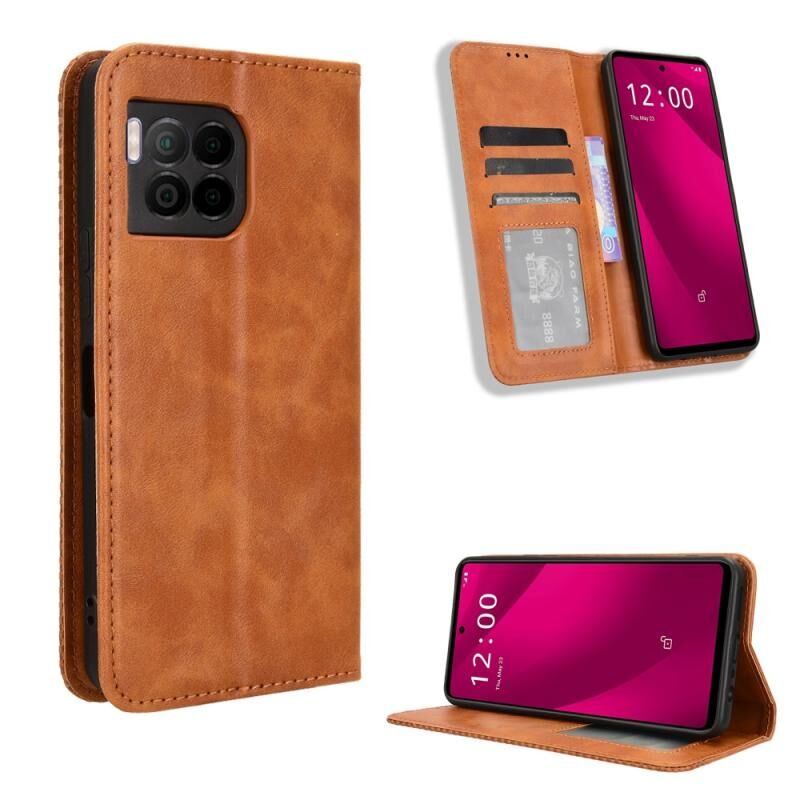 Για T-Mobile Revvl 7 Pro 5G μαγνητική πόρπη ρετρό υφή δερμάτινη θήκη τηλεφώνου (καφέ)