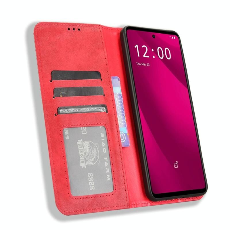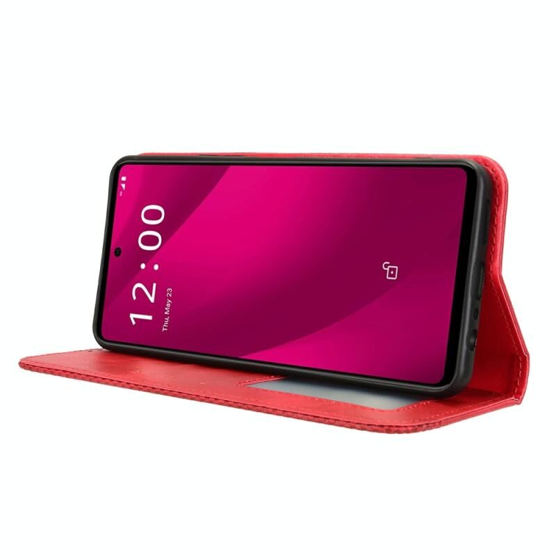 Για T-Mobile Revvl 7 Pro 5G μαγνητική πόρπη ρετρό υφή δερμάτινη θήκη τηλεφώνου (κόκκινο)