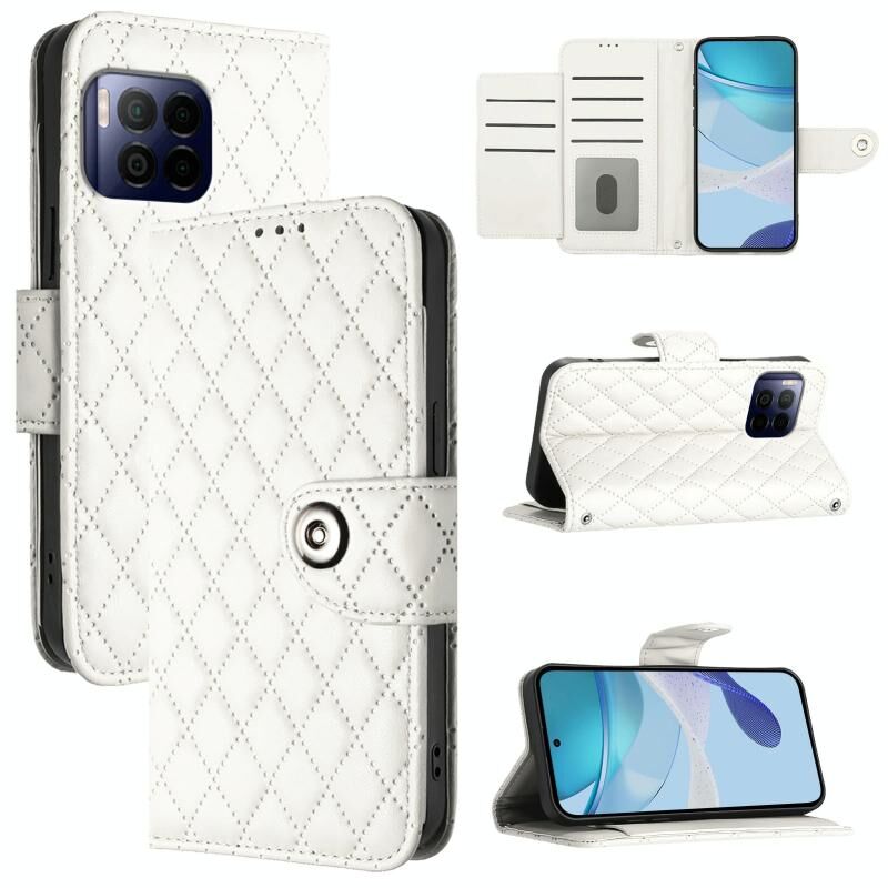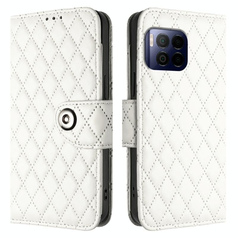 Για T-Mobile REVVL 7 Pro 5G Rhombic Texture Flip δερμάτινη θήκη τηλεφώνου με κορδόνι (λευκό)