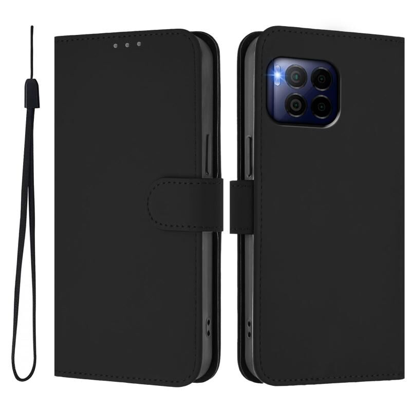 Για T-Mobile Revvl 7 Pro 5G δέρμα αίσθηση Solid Color δέρμα τηλέφωνο υπόθεση με κορδόνι (Μαύρο)