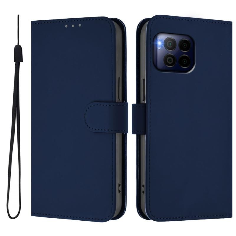 Για T-Mobile Revvl 7 Pro 5G δέρμα αίσθηση Solid Color δέρμα τηλέφωνο υπόθεση με κορδόνι (Navy Blue)