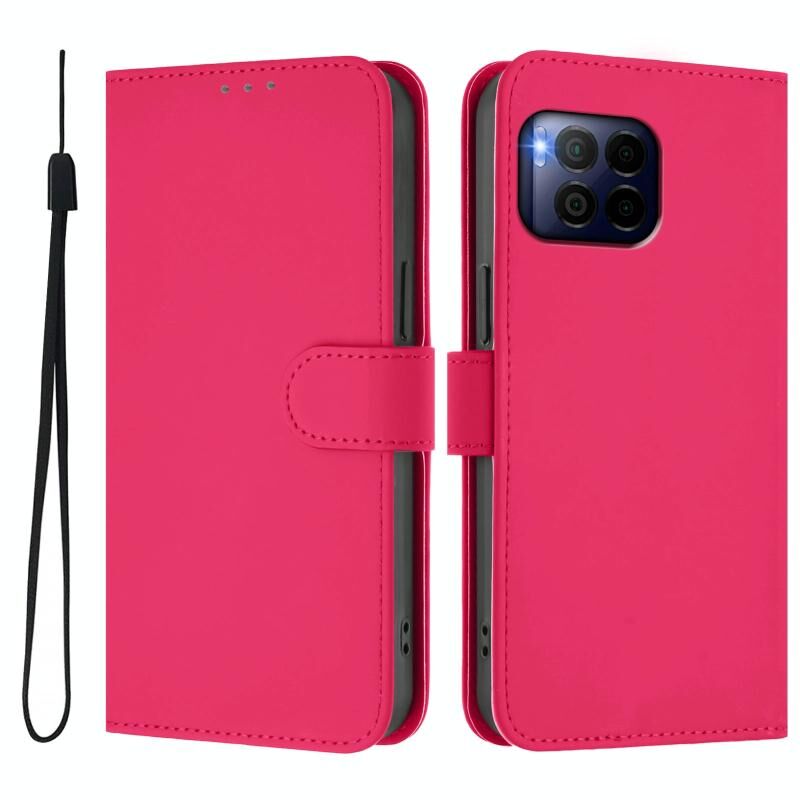 Για T-Mobile Revvl 7 Pro 5G δέρμα αίσθηση Solid Color δέρμα τηλέφωνο υπόθεση με κορδόνι (Rose Red)