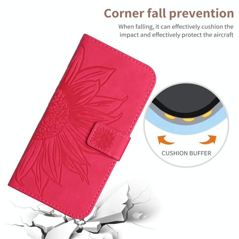 Για T-Mobile REVVL 7 Pro 5G Skin Feel Sun Flower ανάγλυφο ανάγλυφο Flip δερμάτινη θήκη τηλεφώνου με κορδόνι (Rose Red)